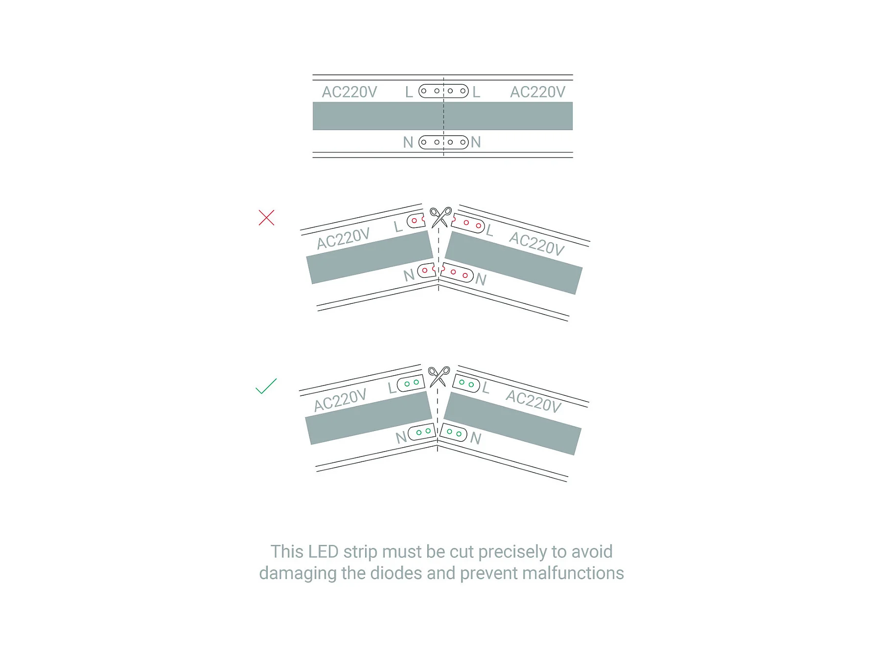Ruban LED Dimmable 220V COB Auto-redressement 320 LED/m 8W/m 720 lm/m Largeur 12mm Coupe 50cm IP65 CRI90 Sur mesure 4000K Blanc neutre 3 m