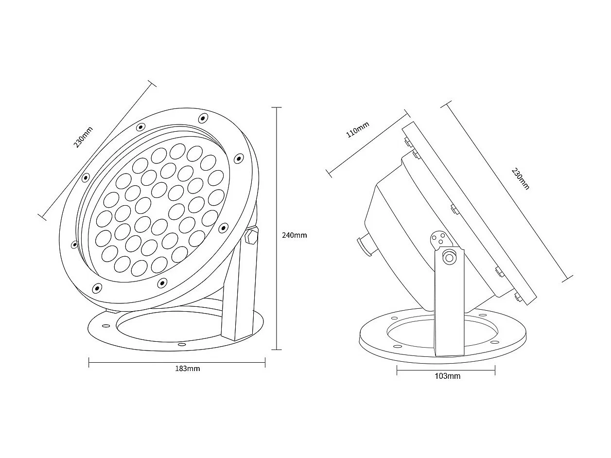 Spot LED RGB Fixation au Sol 12V 36W Submersible IP68 RGB