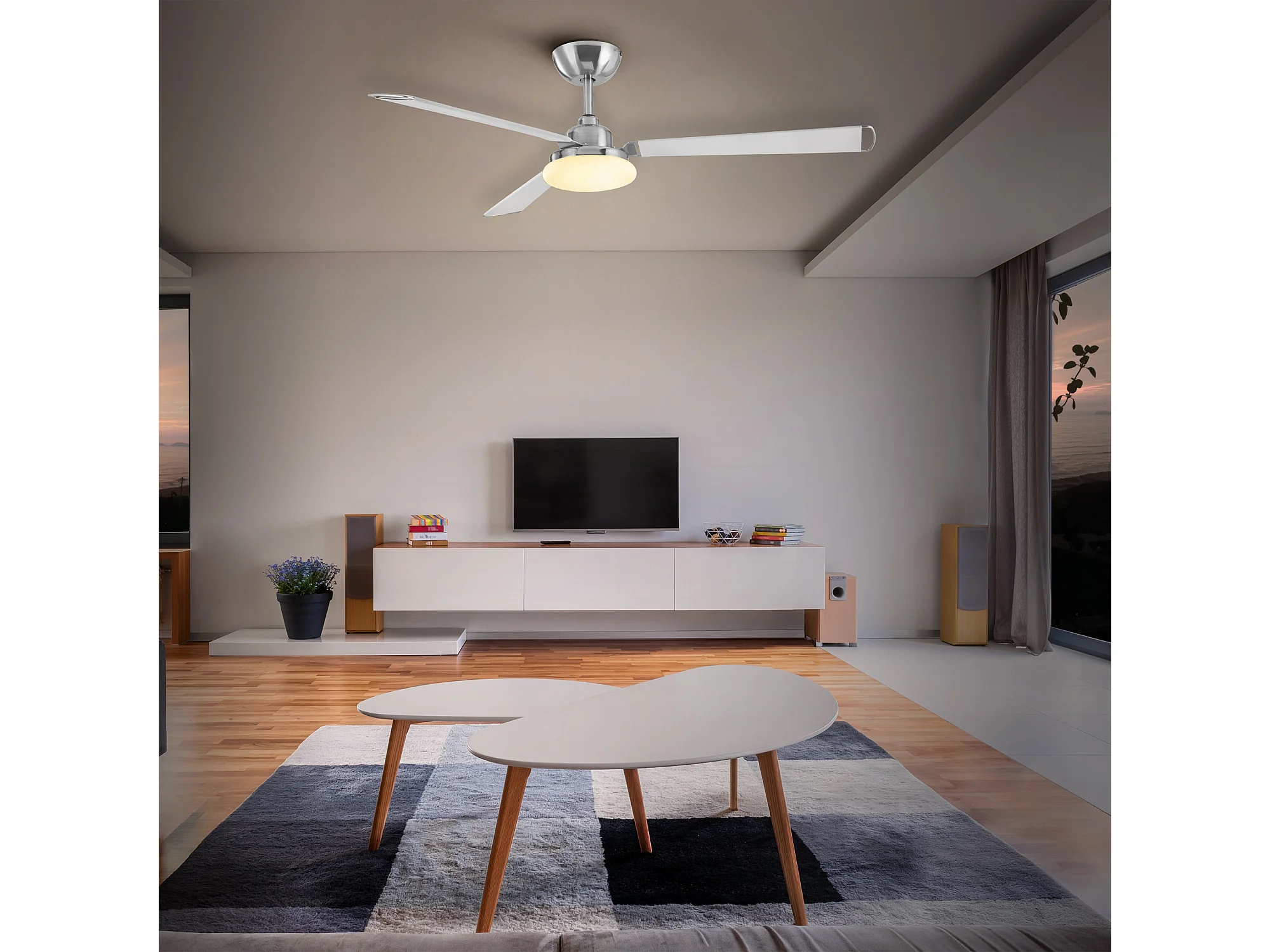 LEDS C4 Ventilateur du Plafond Calima Led 14.4W Tw 3000-5700K Light For Life Nickel Satiné Blanc 8
