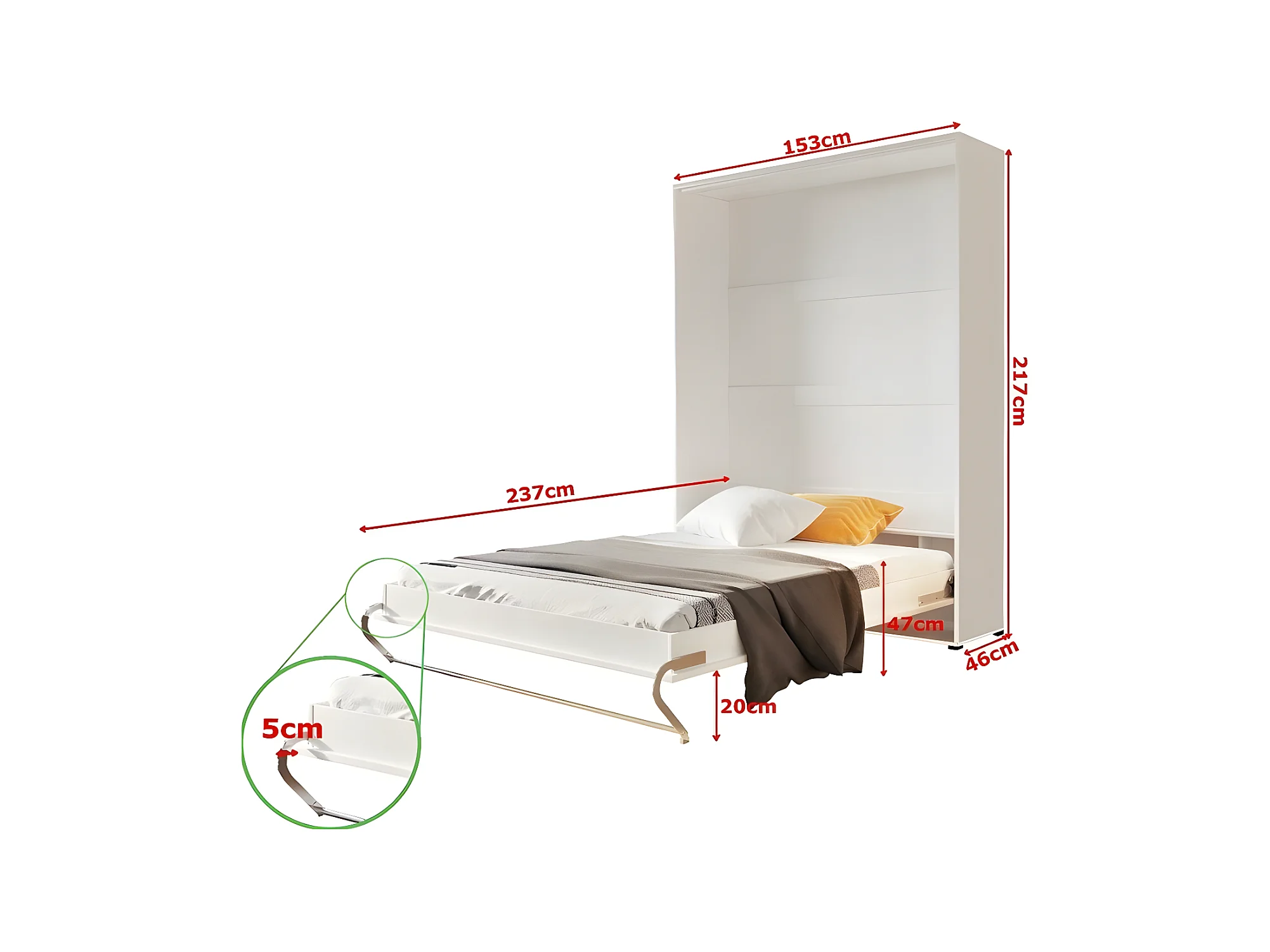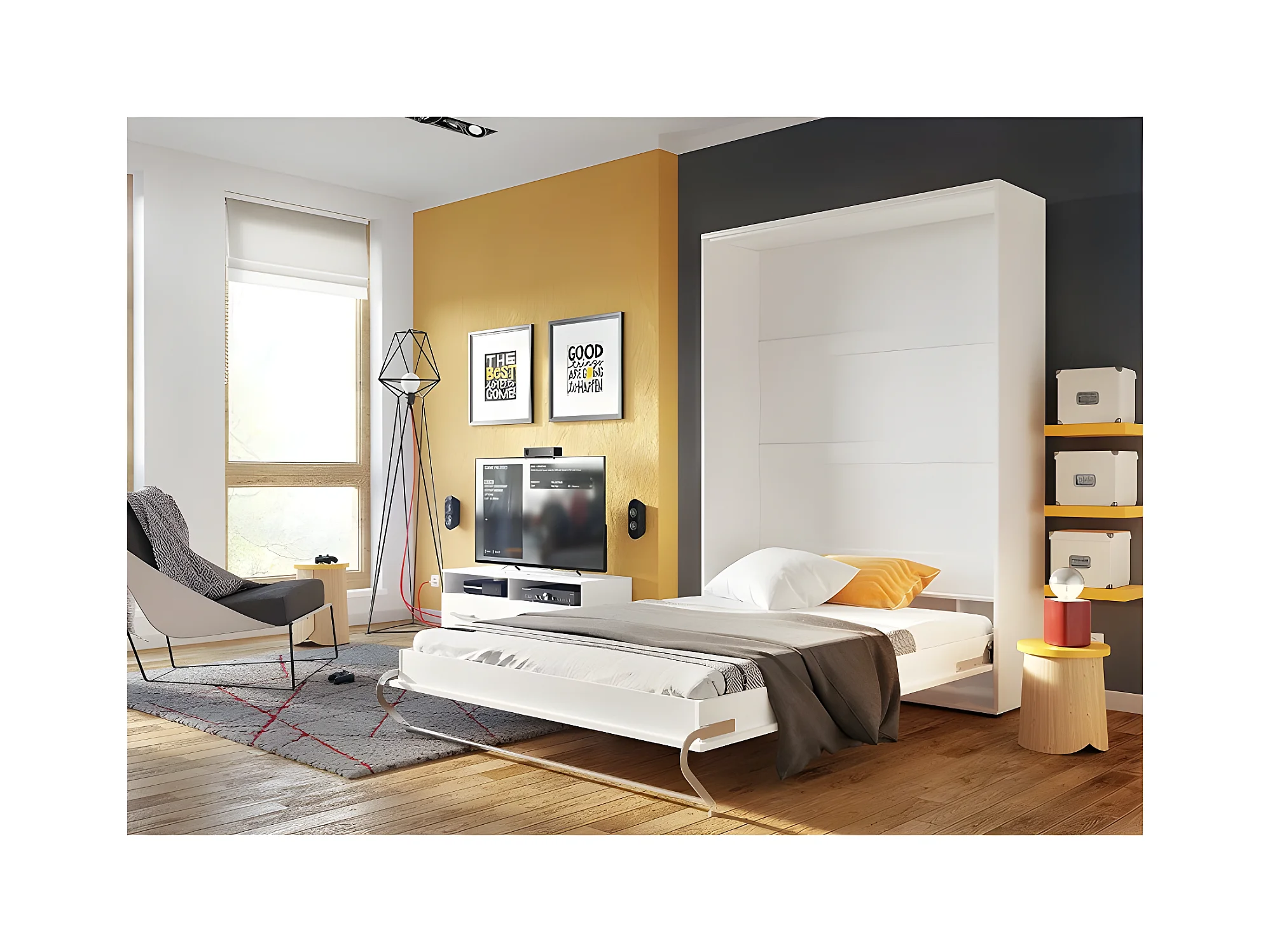 Lenart Lit escamotable MATELAS inclus Vertical 140x200cm Blanc mat Lit Rabattable Consus pro