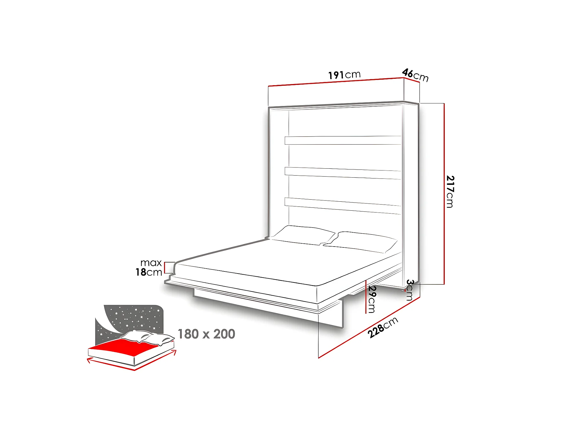 Lenart Lit escamotable MATELAS inclus Vertical 180x200cm Blanc mat Lit Rabattable"Consus"