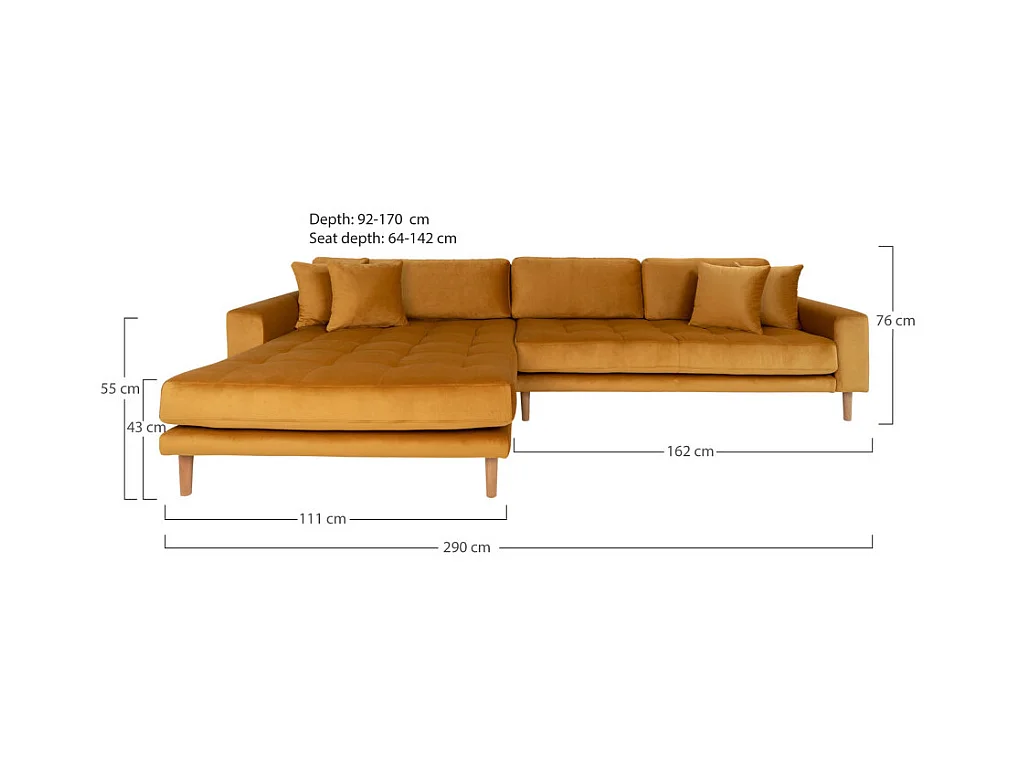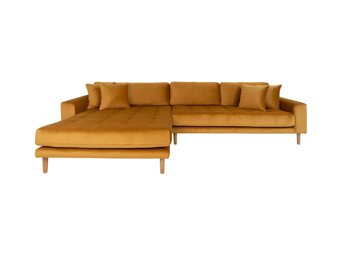 Lido - Canapé d'angle gauche en velours L290cm : Couleur - Jaune moutarde