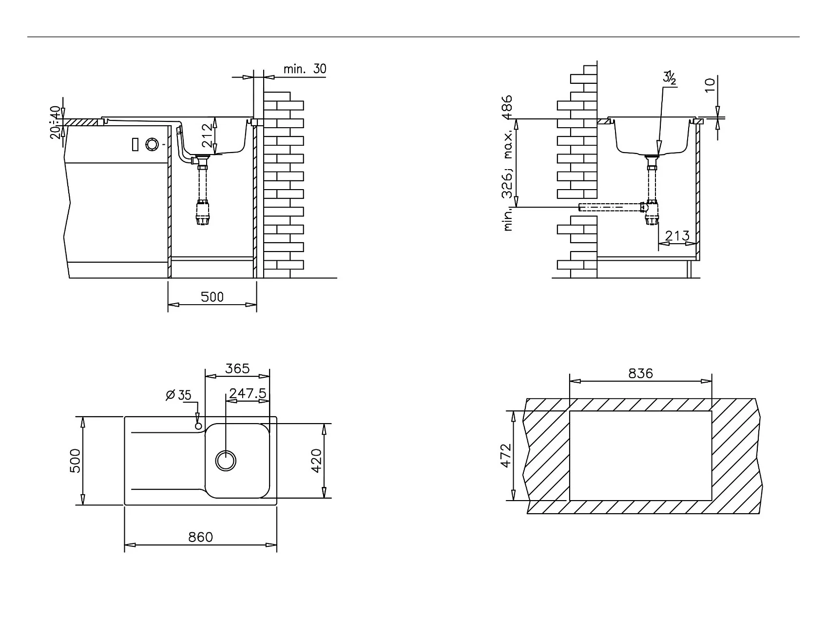 GRANIT ÉVIER SOUS PLAN RECTANGULAIRE TROP PLEIN TUGA48