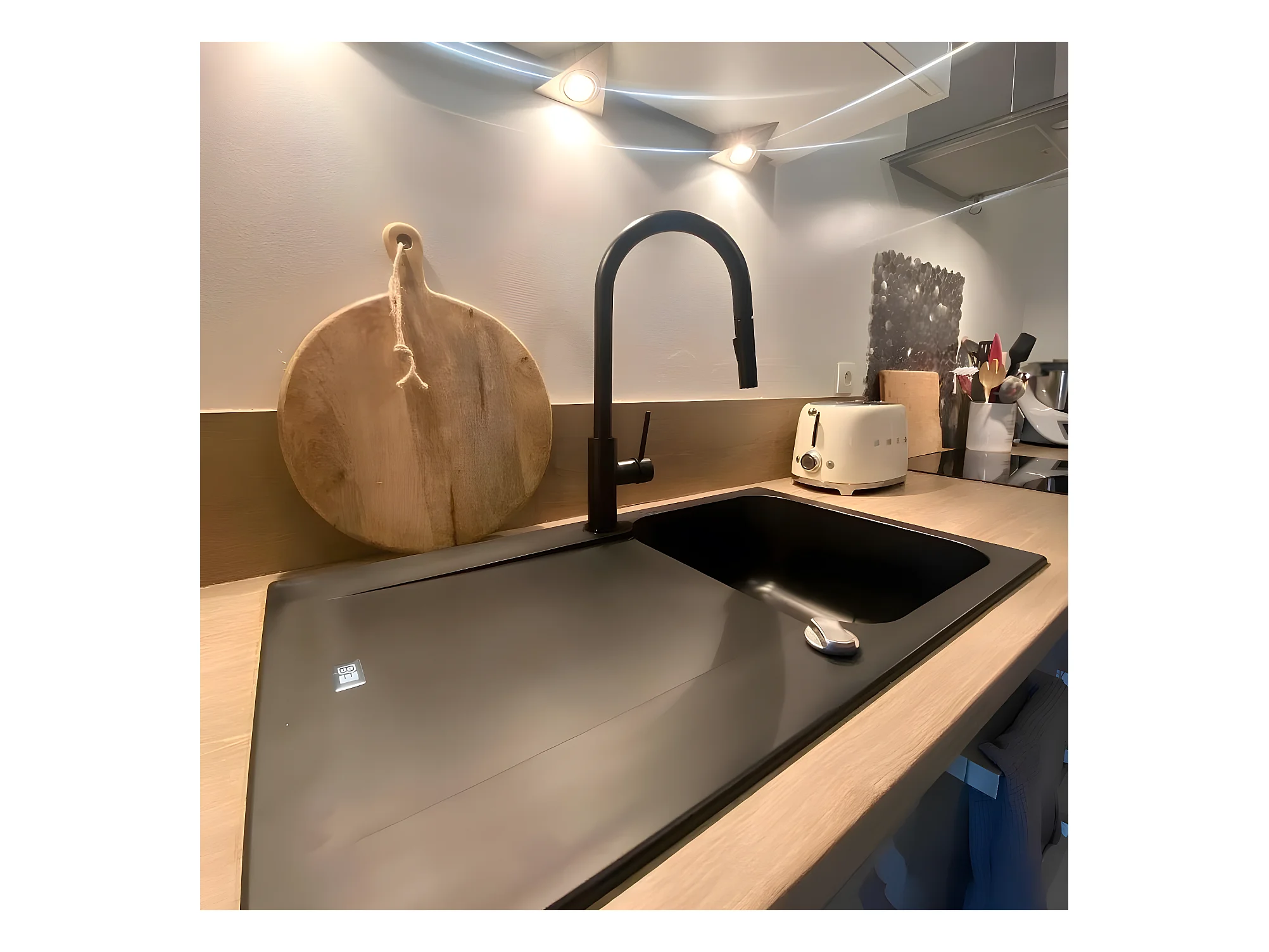Lisse évier réversible 1 grande cuve 1 égouttoir en résine noir - Essebagno