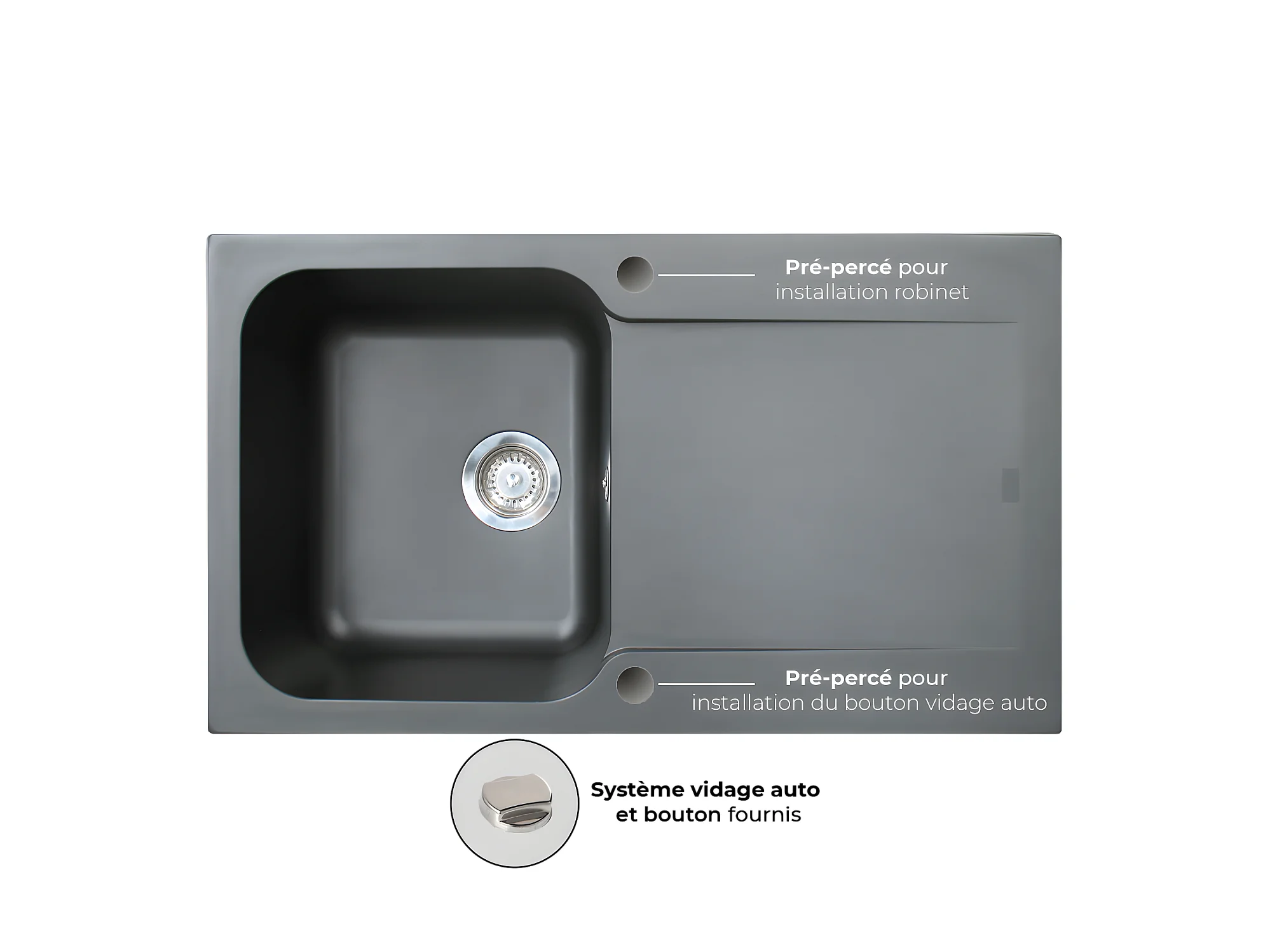 Sierra évier 1 cuve 1 égouttoir en résine noir - Essebagno