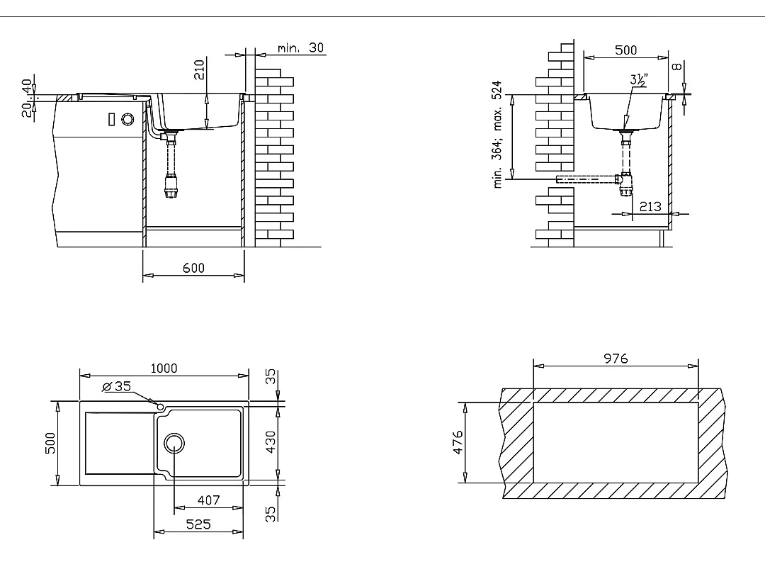Lisse évier réversible 1 grande cuve 1 égouttoir en résine gris - Essebagno