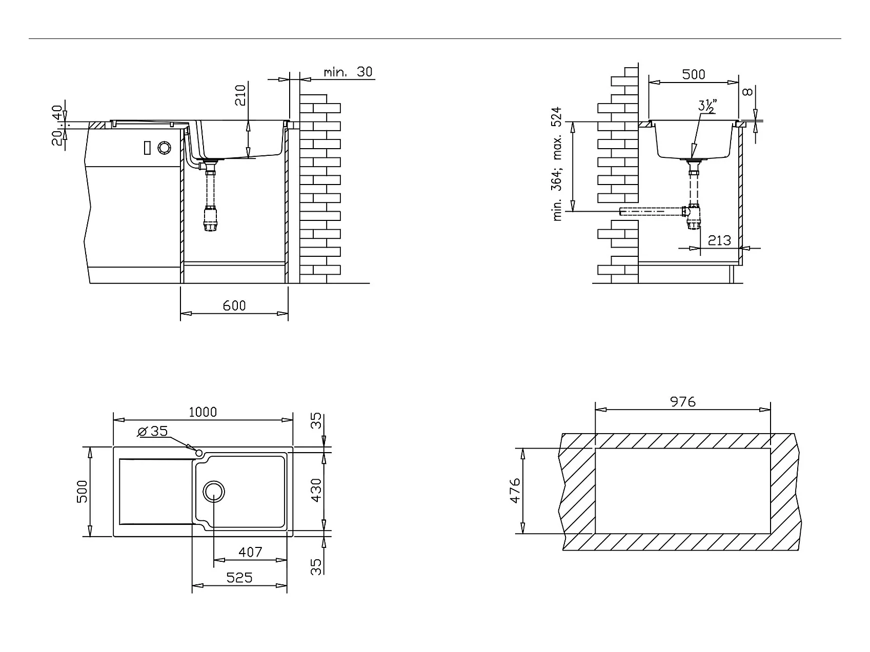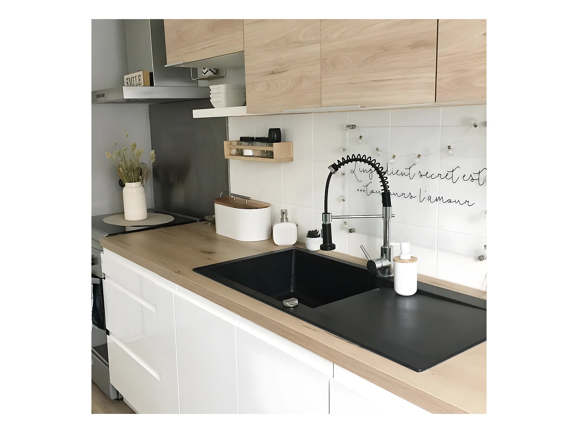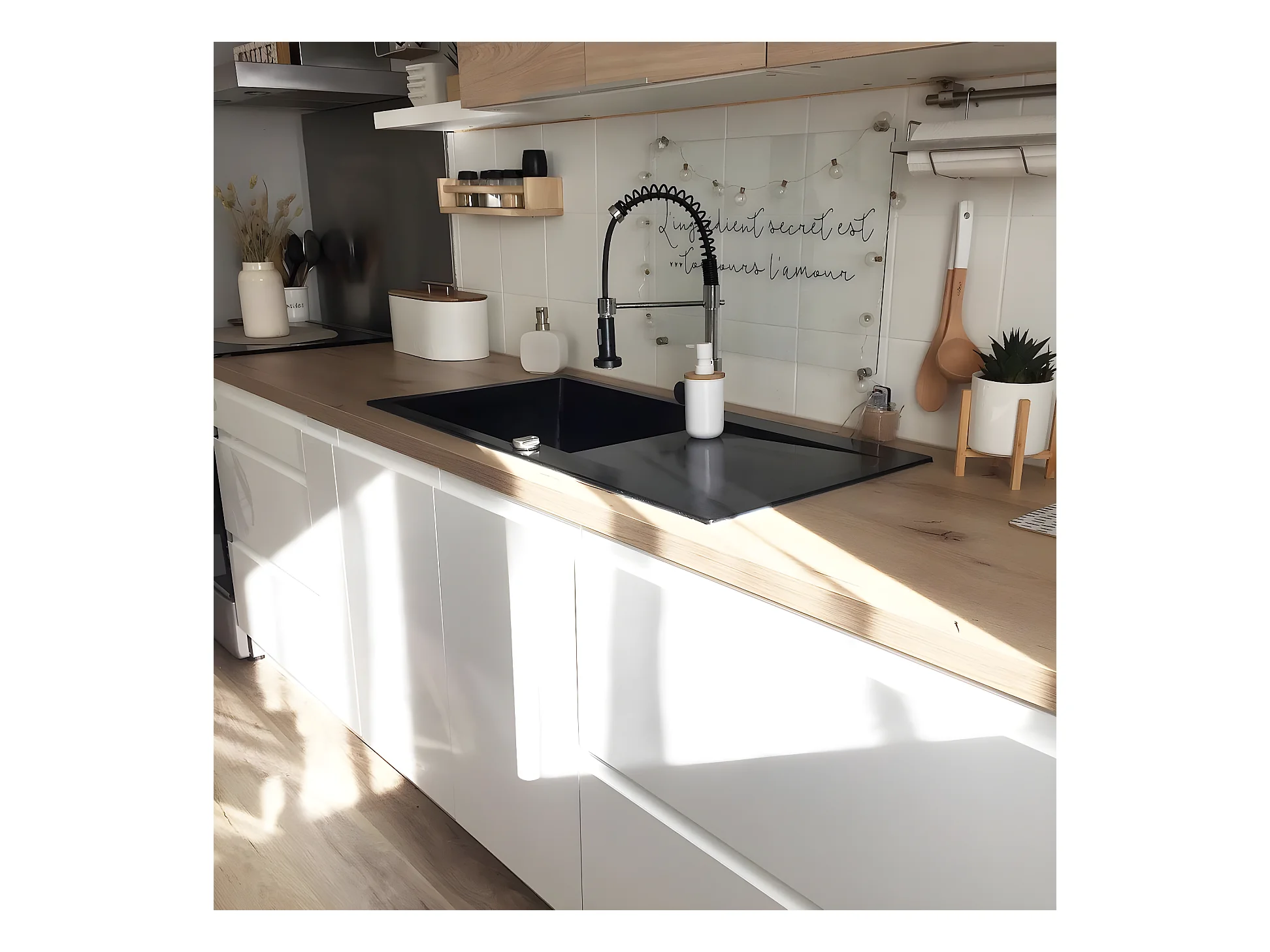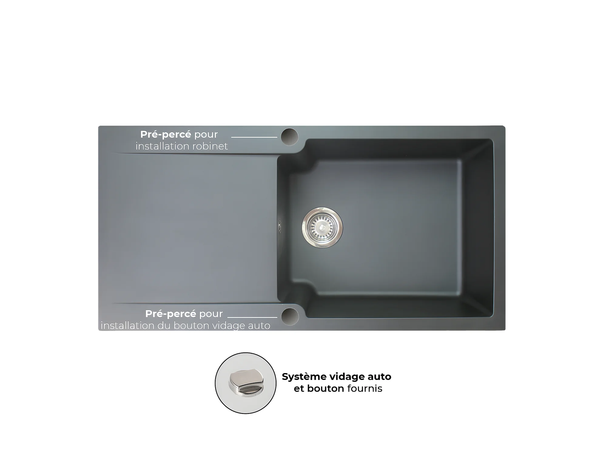 Lisse évier réversible 1 grande cuve 1 égouttoir en résine noir - Essebagno