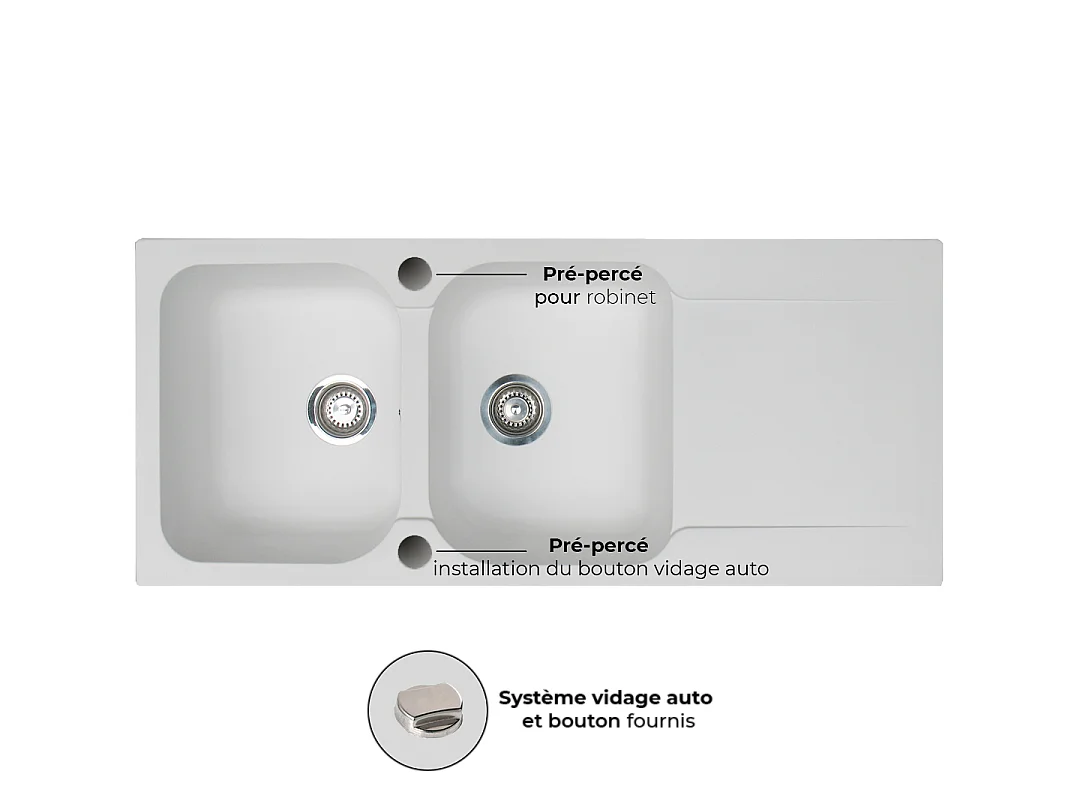 Lisse évier réversible 2 cuves 1 égouttoir en résine blanc - Essebagno