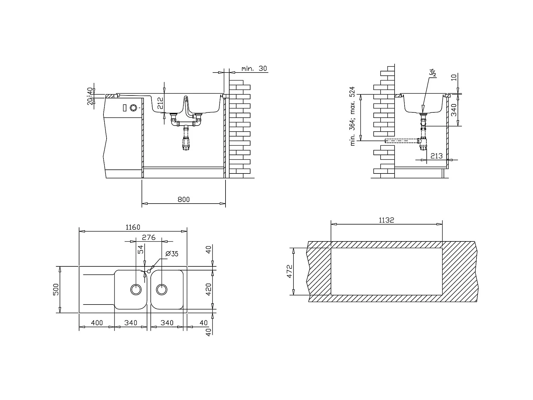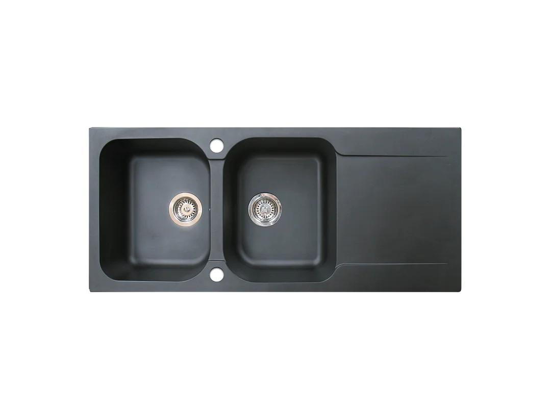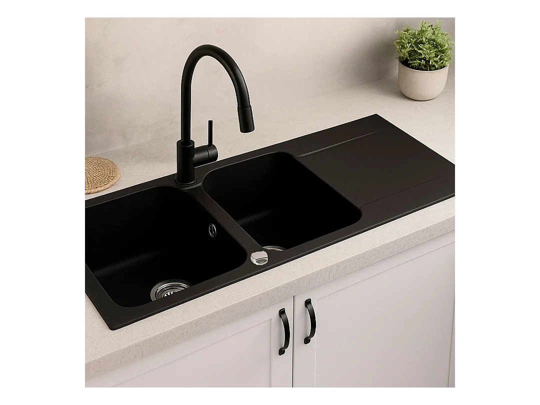 Lisse évier réversible 2 cuves 1 égouttoir en résine noir - Essebagno