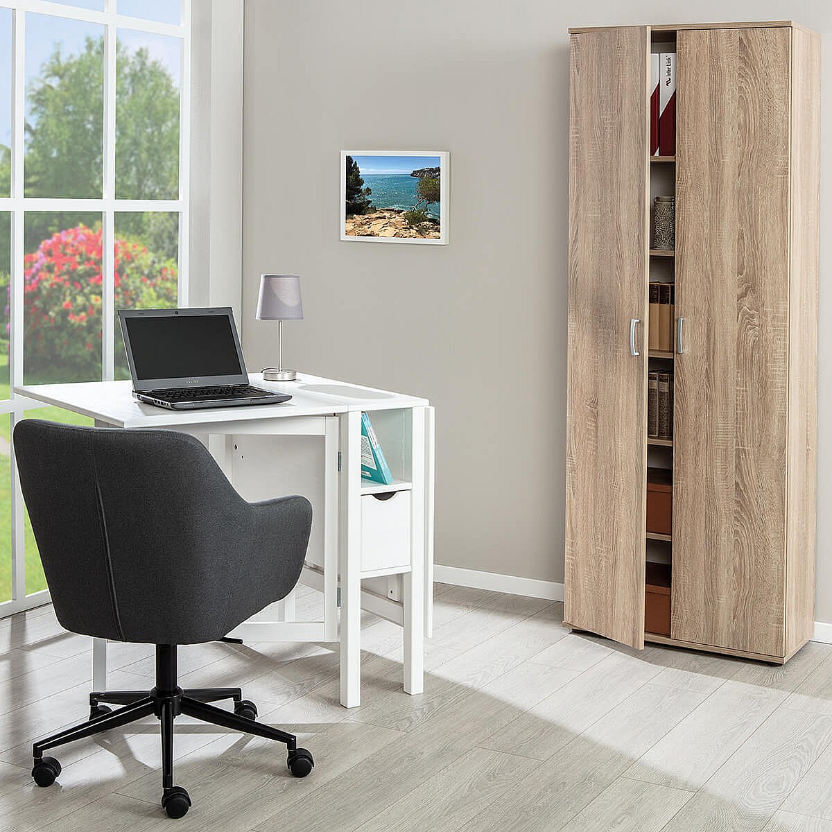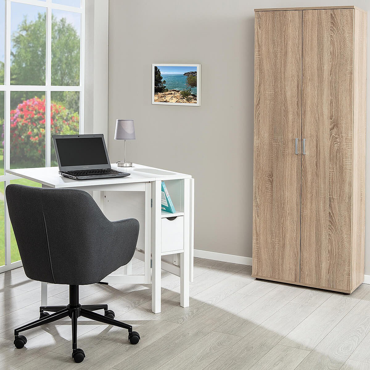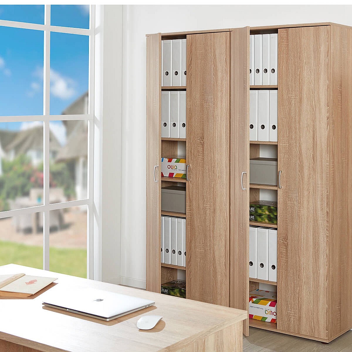 LIST - Armoire 2 Portes 6 Compartiments Aspect Bois