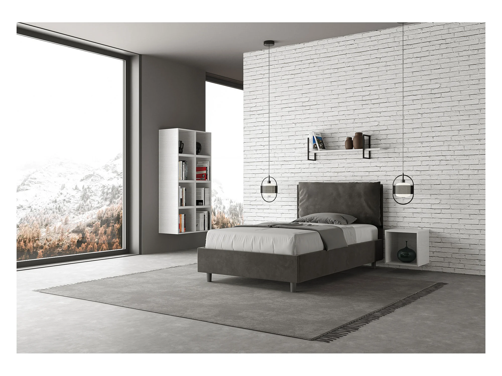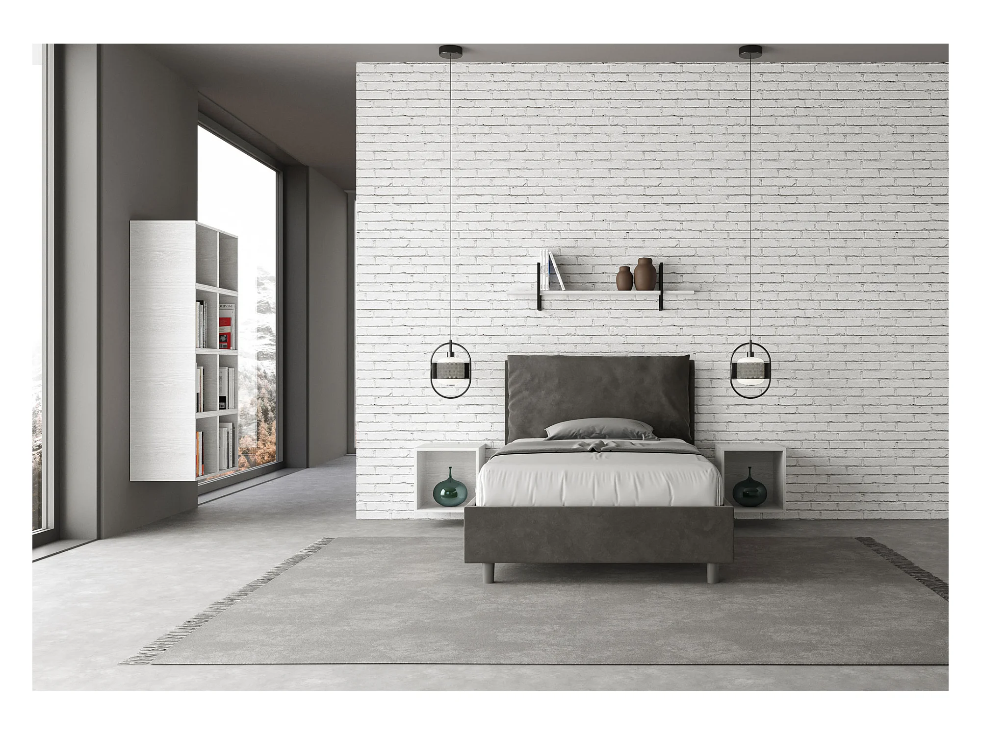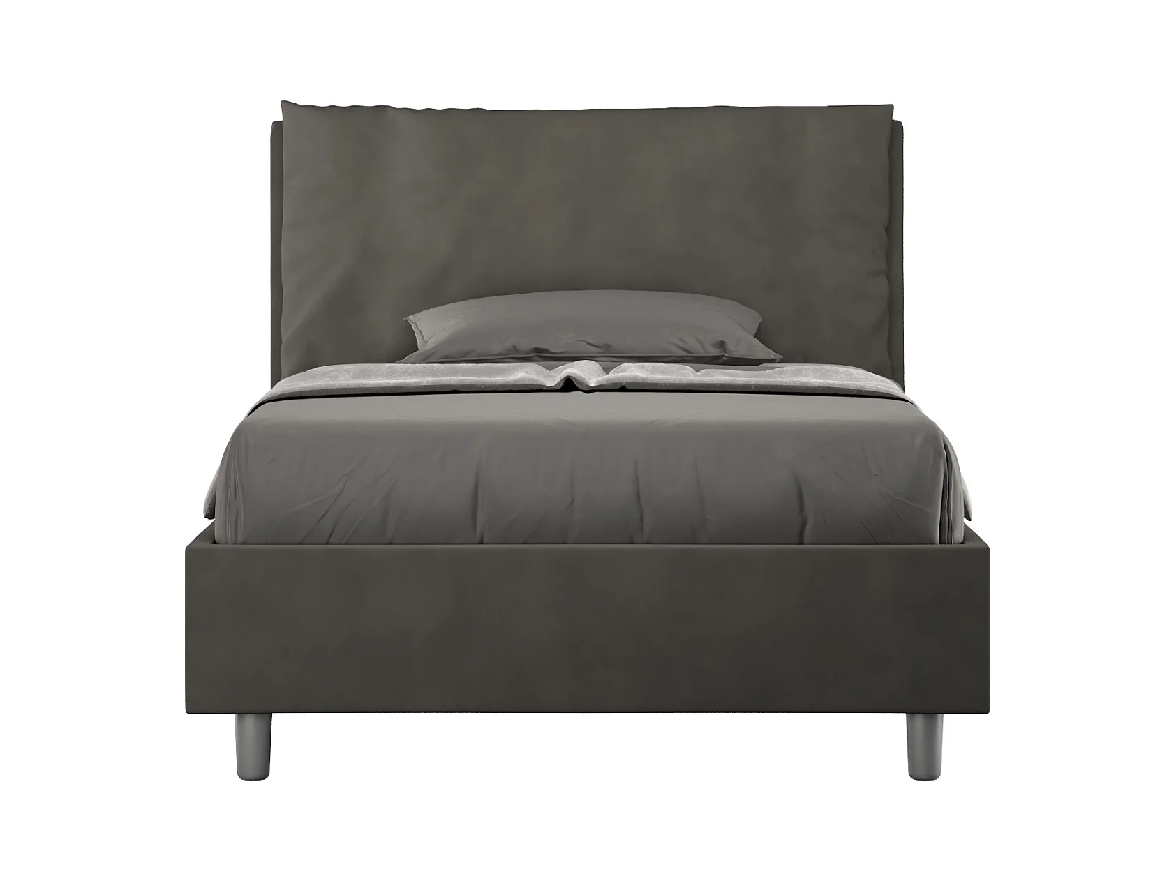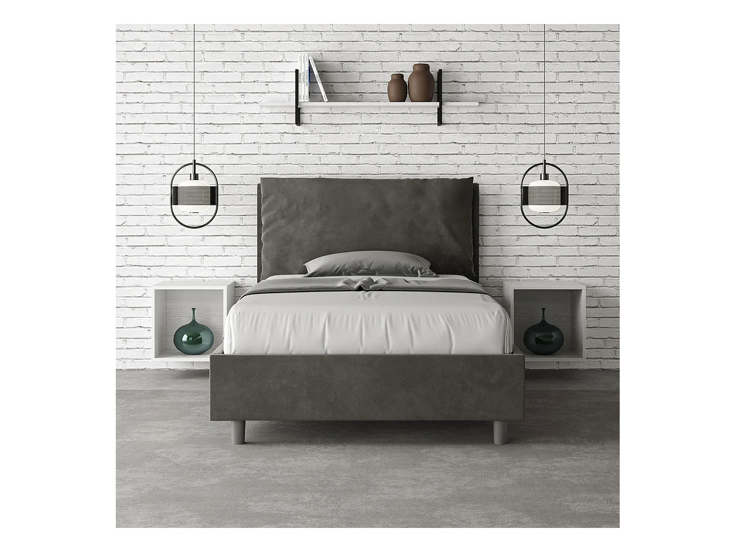 Lit 1 place et demi avec sommier rembourré 120x210 microfibre gris Antea Large