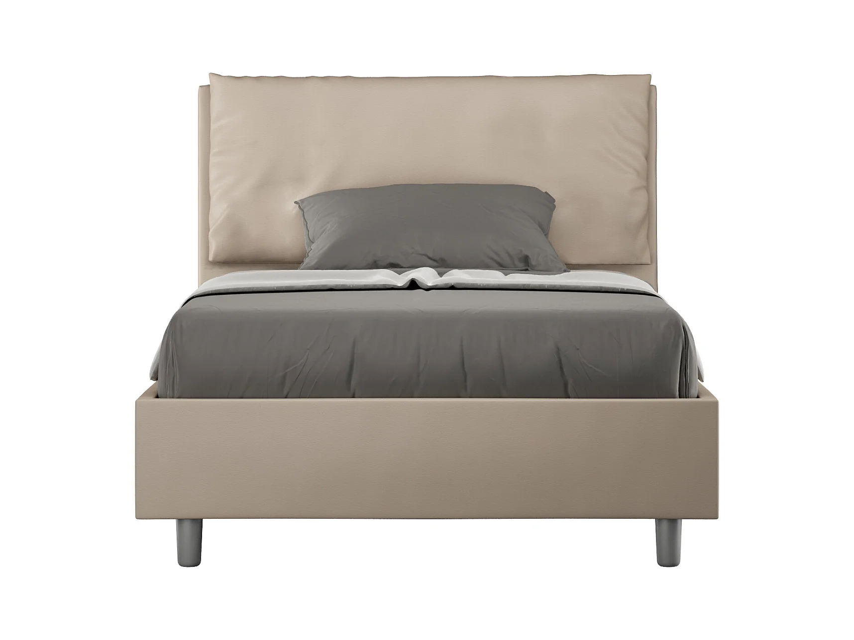Lit 1 place et demi avec sommier rembourré 120x210 similicuir taupe Antea Large