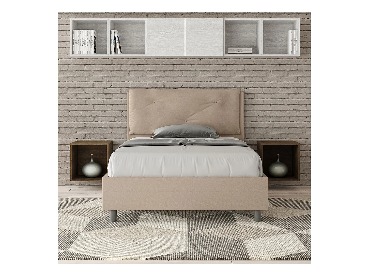 Lit 1 place et demi avec sommier rembourré 120x210 similicuir taupe Appia Large