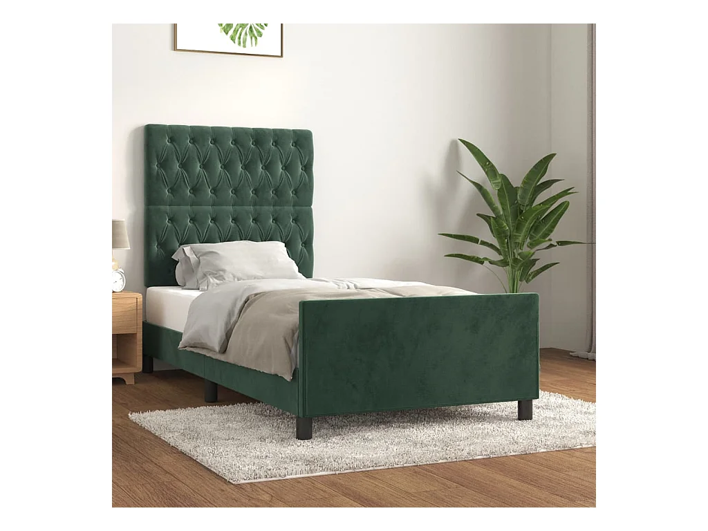 Lit-100x200 cm avec tête de lit Vert foncé Velours EGGB69123