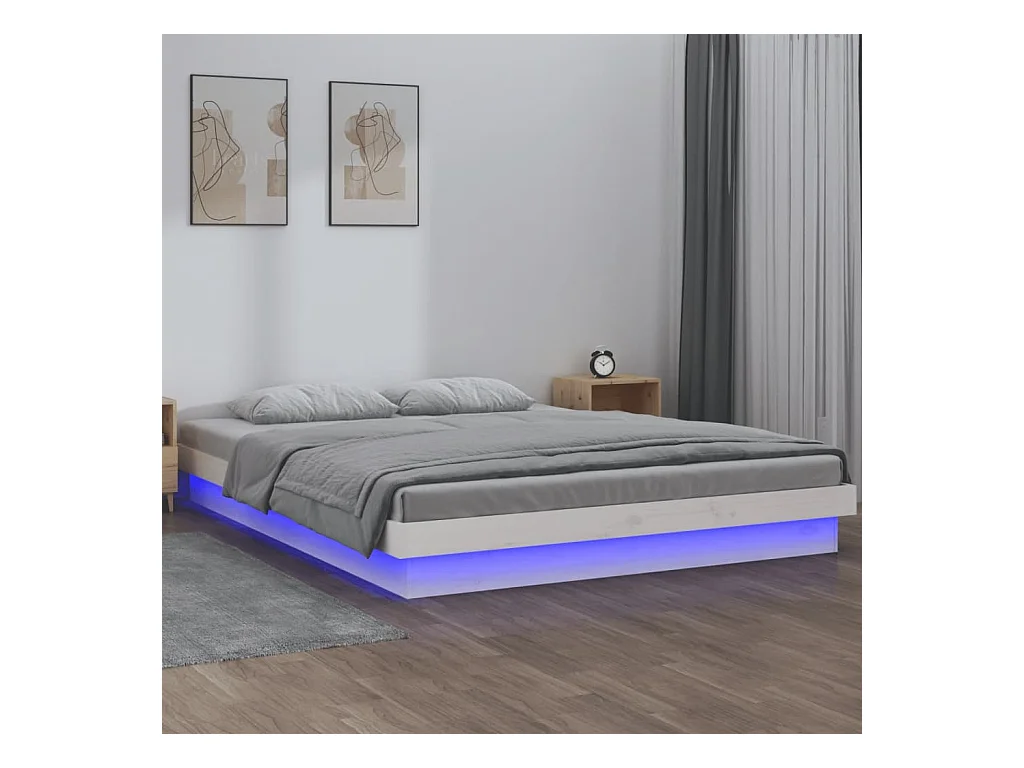 Lit-120x190 cm à LED blanc petit double bois massif HOQW17880