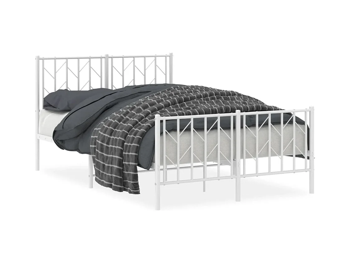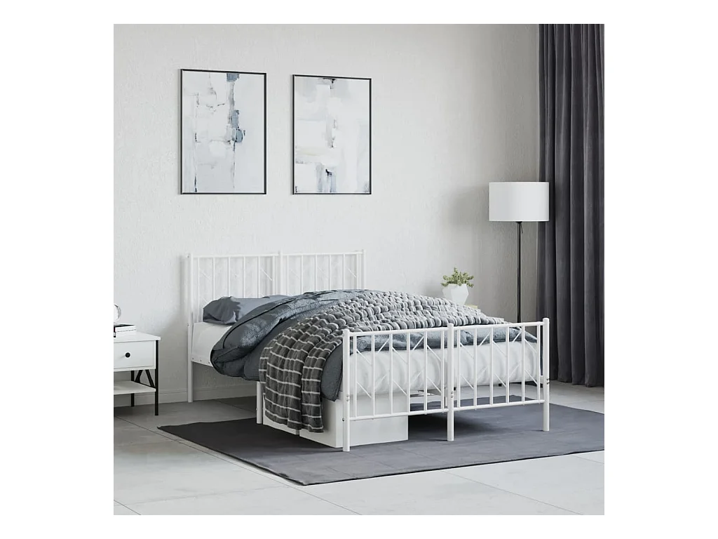 Lit double métal + tête de lit/pied de lit blanc 120x190cm FR72363