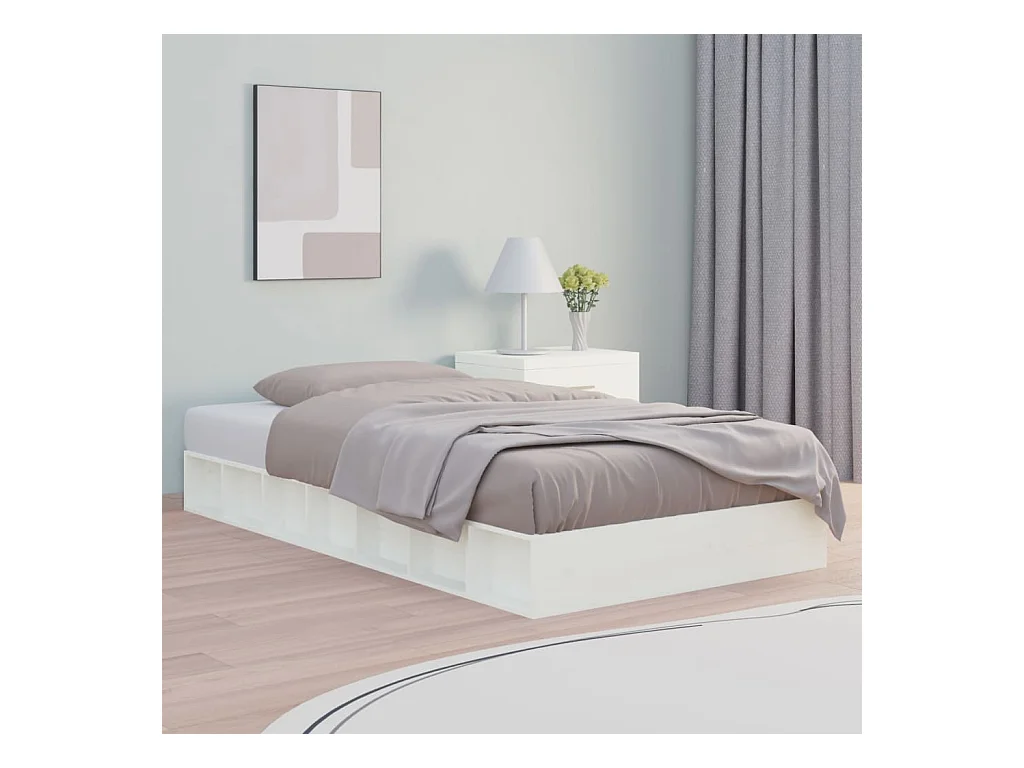 Lit-135x190 cm Blanc Double Bois massif EGGB44411