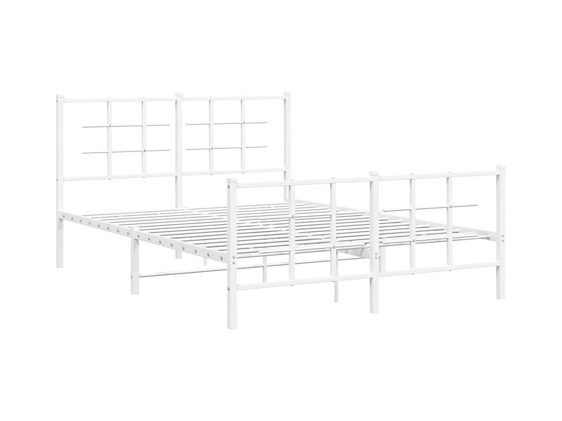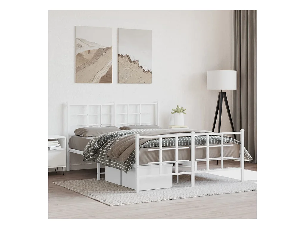 Cadre de lit métal sans matelas et pied de lit blanc 137x190 cm