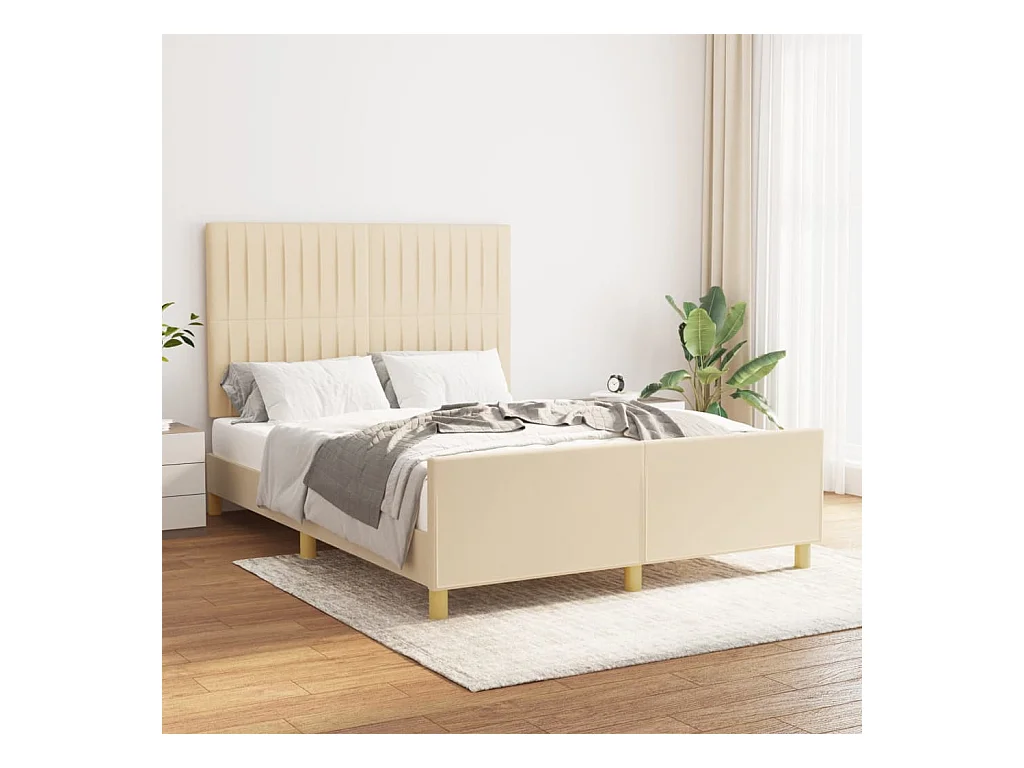 Lit-140x200 cm avec tête de lit Crème Tissu EGGB14076