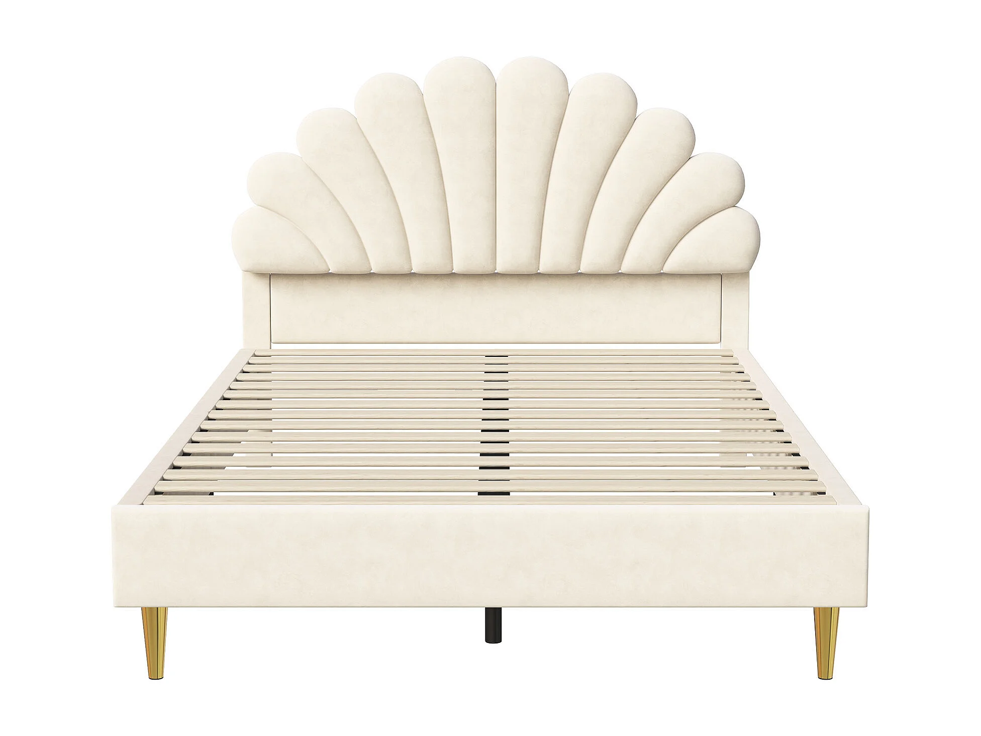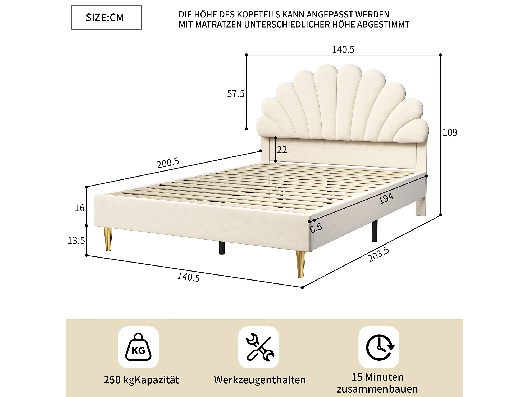 Lit 140x200 cm - lit enfant 140x200 cm - lit 1 place 140 x200 cm - lit pétale 140x200 cm - lit rembourré 140 x 200 cm -lit 140x200 cm tissu en velours - beige