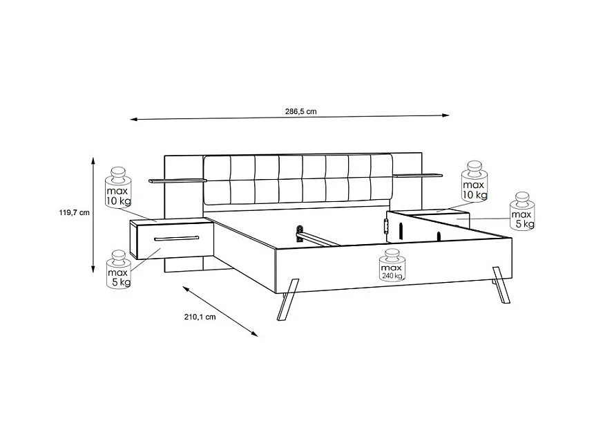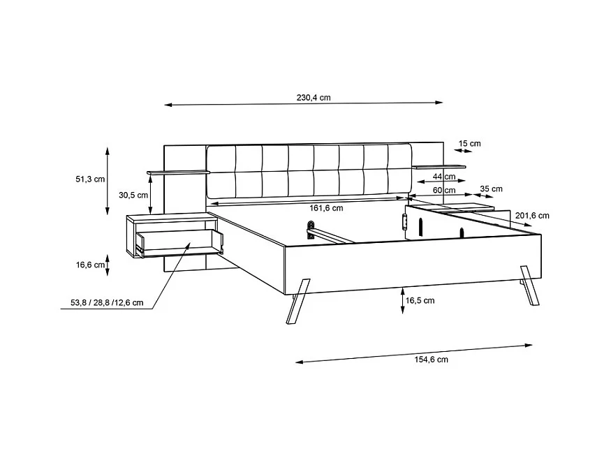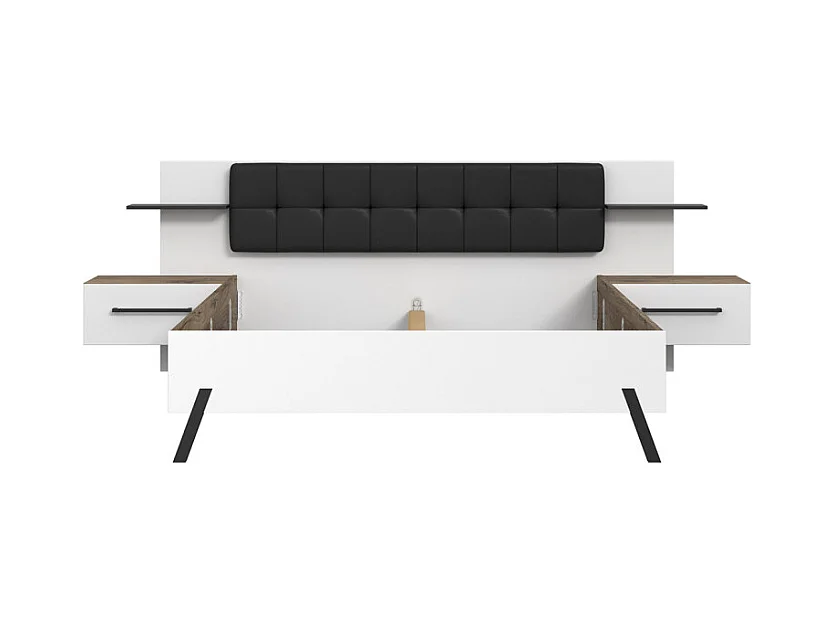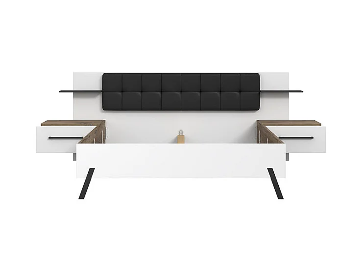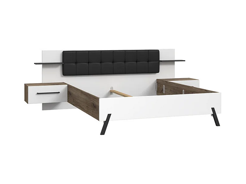 Lit 160 x 200 cm décor blanc et bois foncé chevet intégrés - MONA