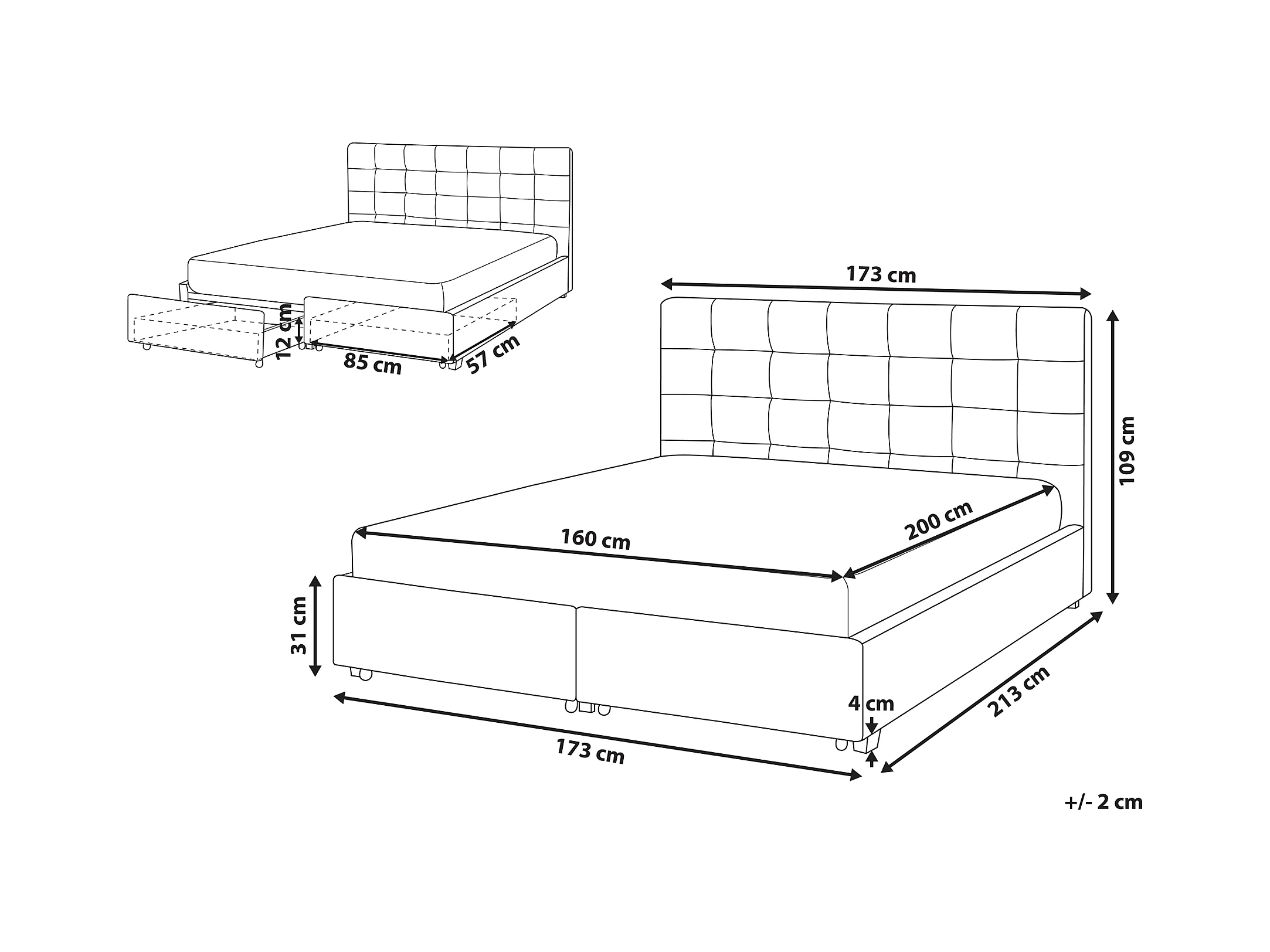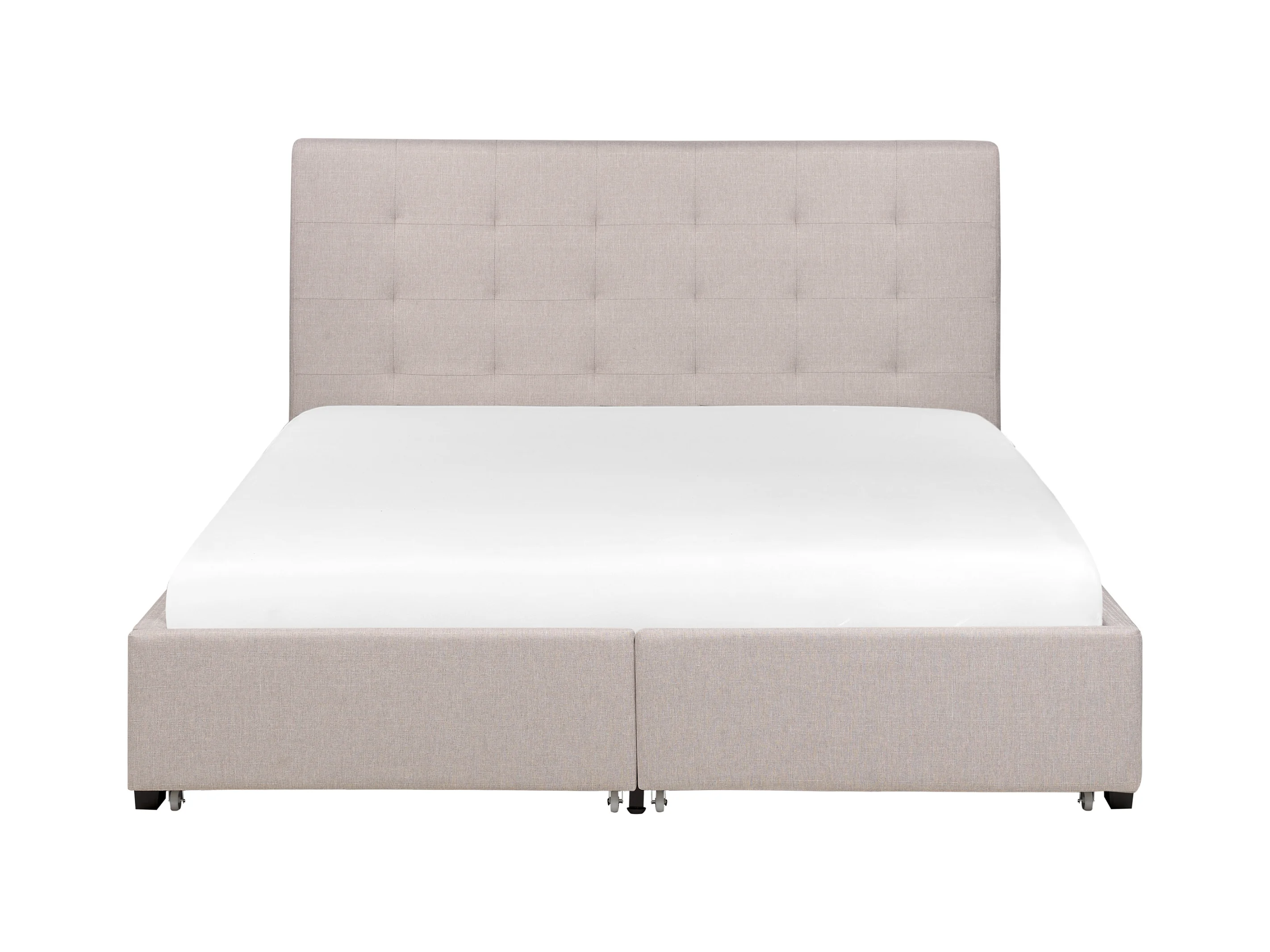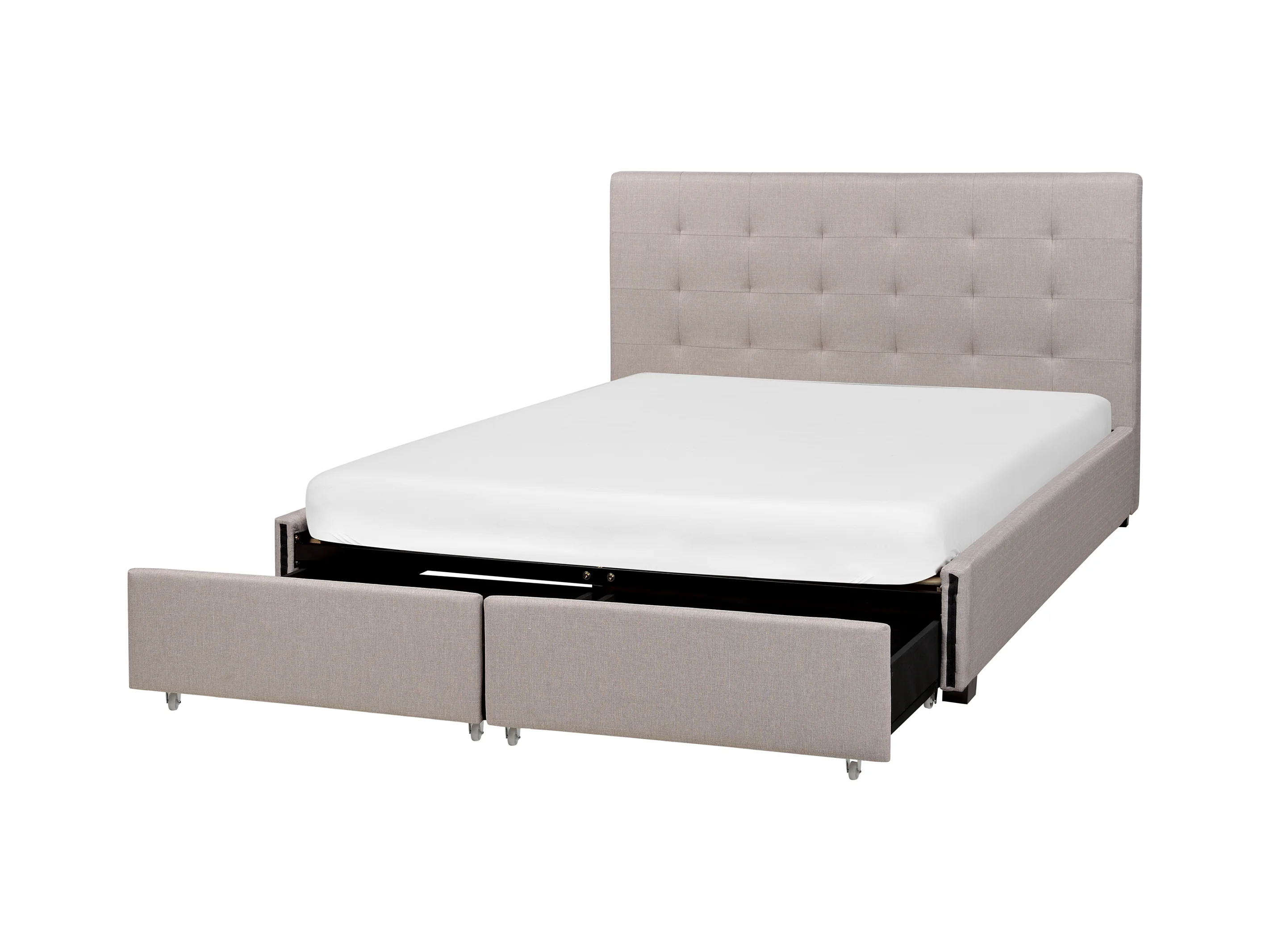 Lit avec tiroirs de rangement Tissu LA ROCHELLE 160 x 200 cm Gris clair