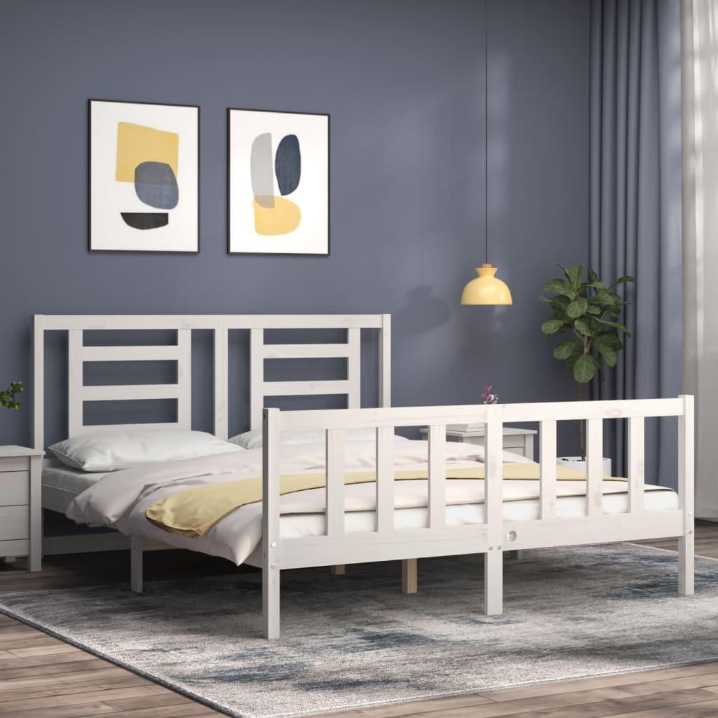 Lit-160x200 cm avec tête de lit blanc bois massif EGGB54976
