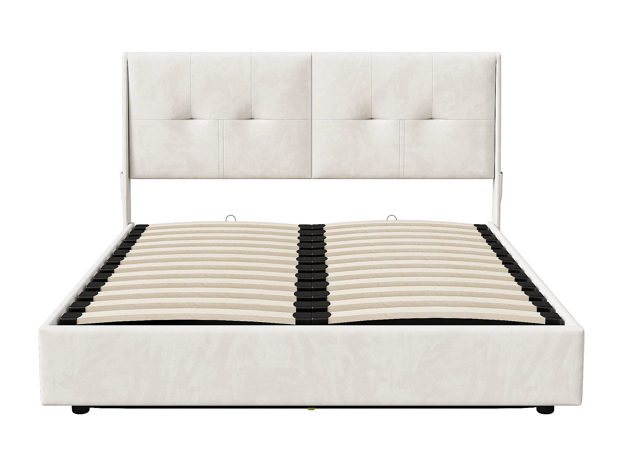 Lit 160x200 cm - NEXU - LED - lit double 160x200 cm - cadre de lit coffre 160x200 cm avec sommier à lattes - tissu en velours - beige