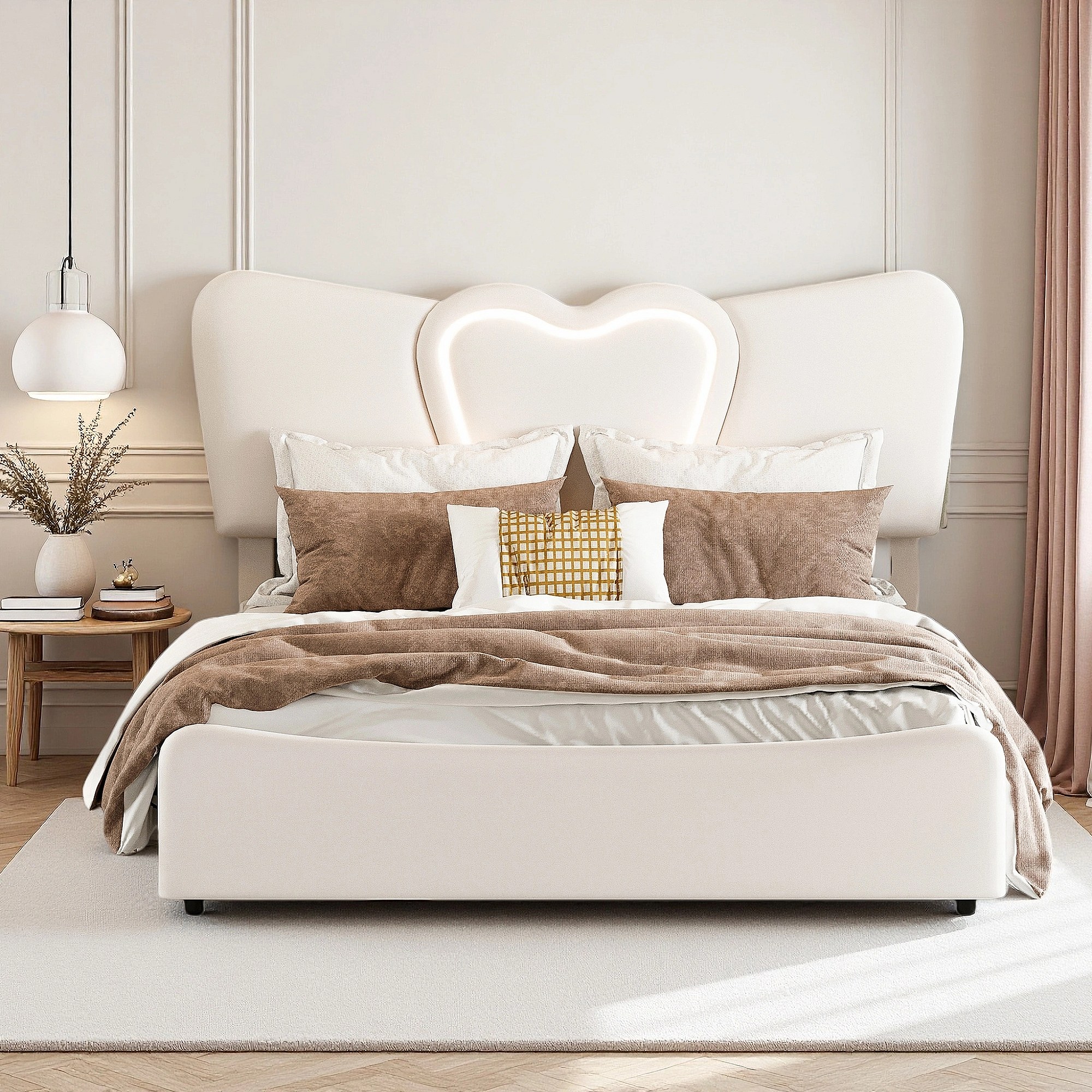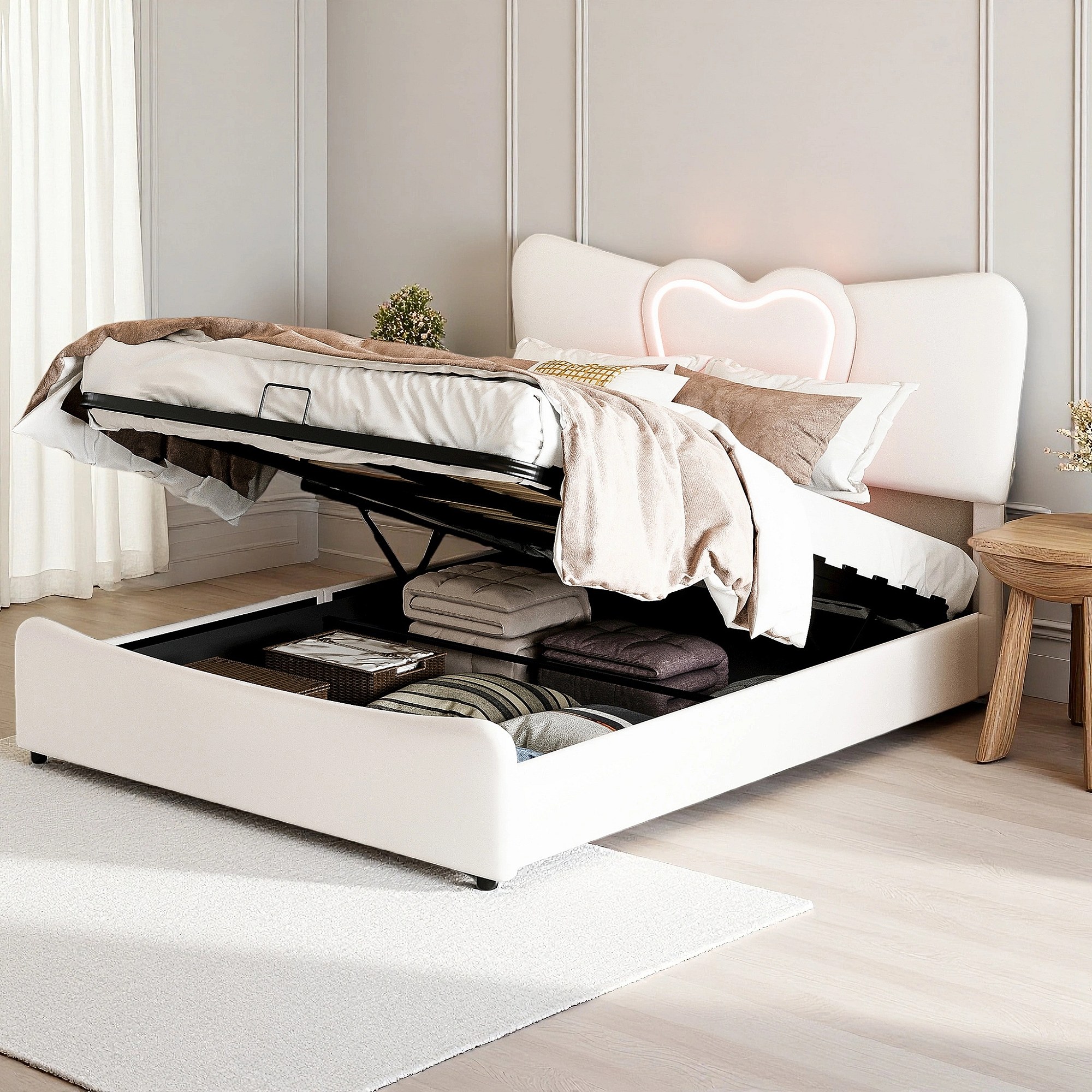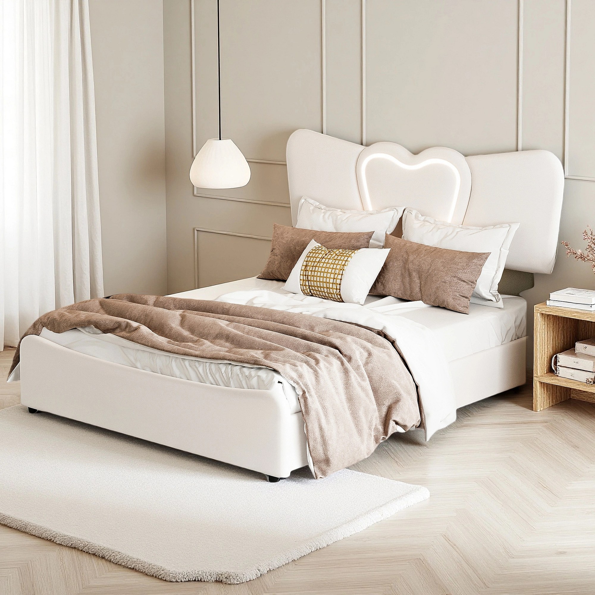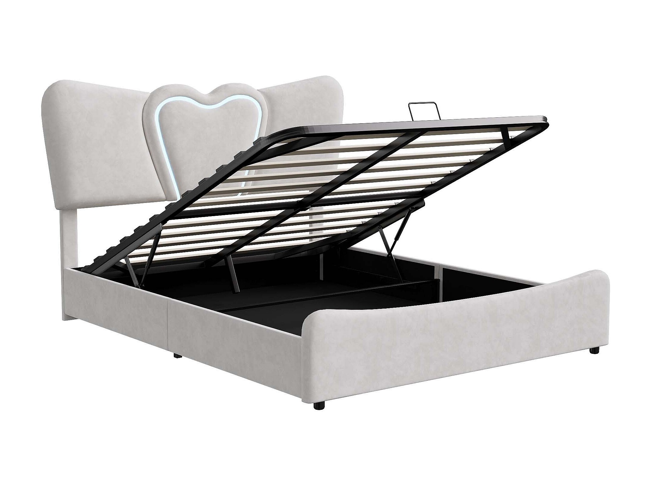 Lit 160x200 cm - NEXU - LED - USB - lit 160x200 cm tissu en Velours - cadre de lit coffre 160x200 cm - beige