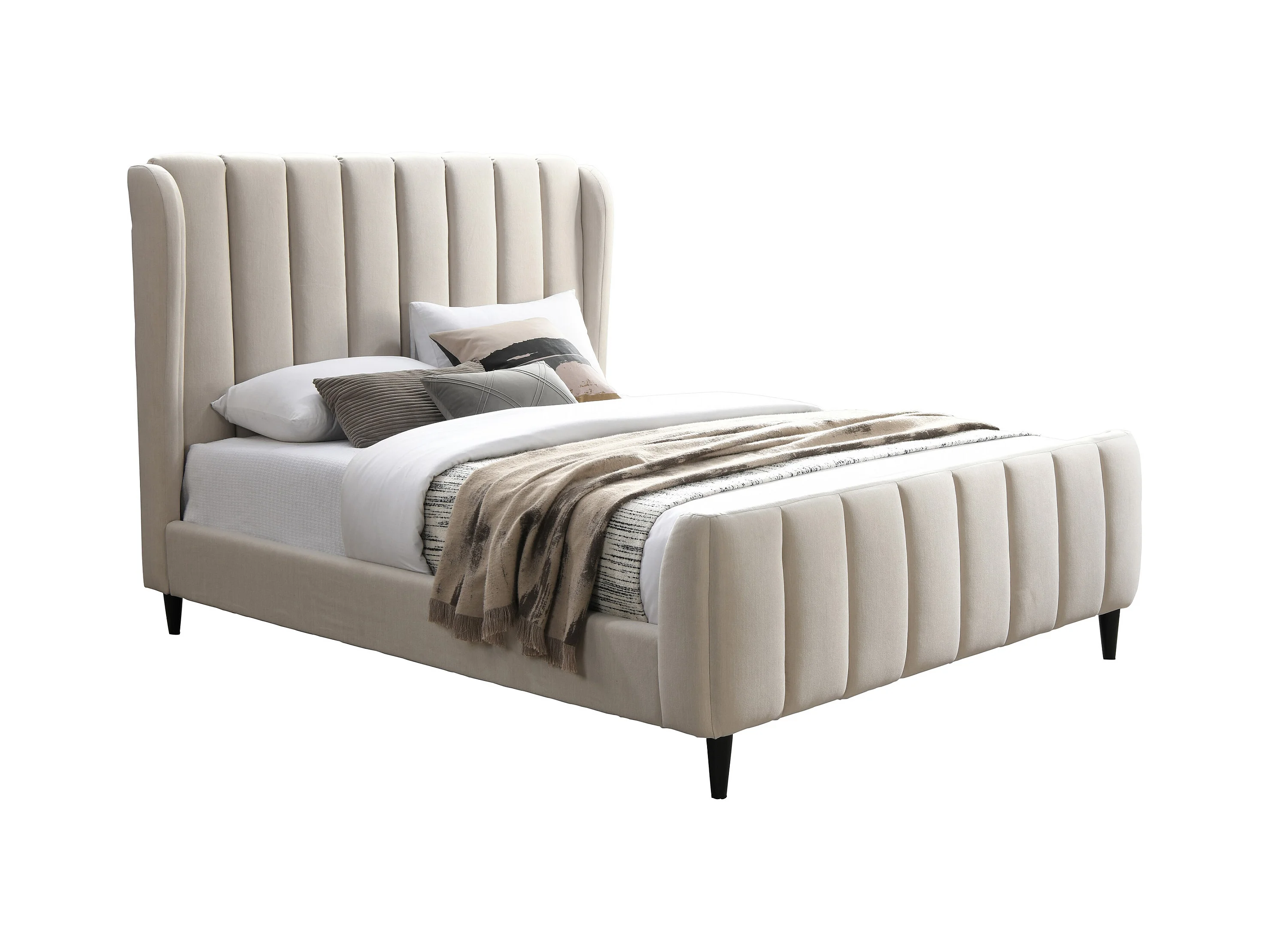 Lit 180 x 200 cm - Tissu avec coutures verticales - Beige - CASAGOTI
