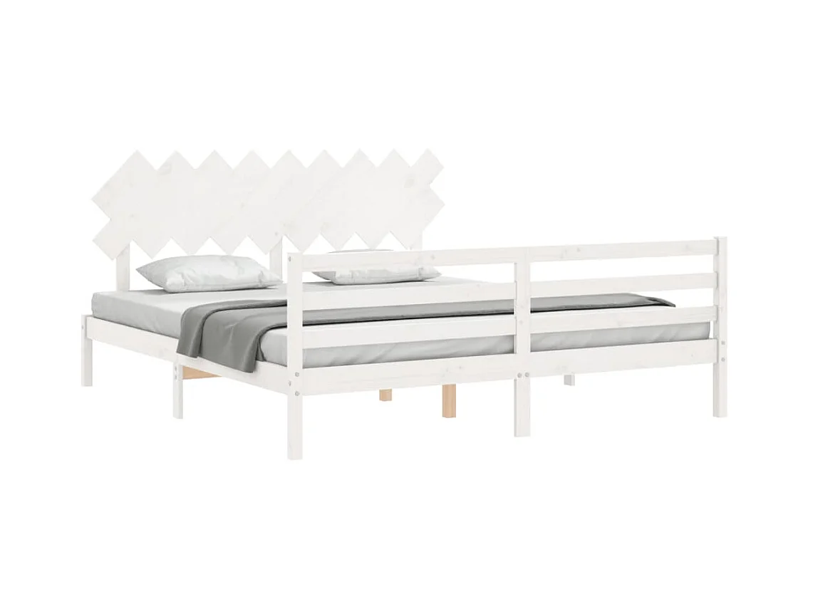 Lit-180x200 cm avec tête de lit blanc Super King bois massif EGGB98762