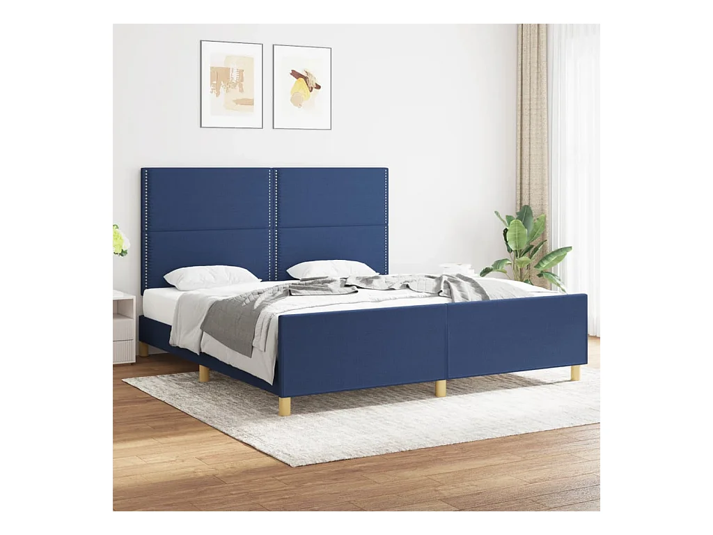 Lit-180x200 cm + tête de lit Bleu Tissu HOQW20730