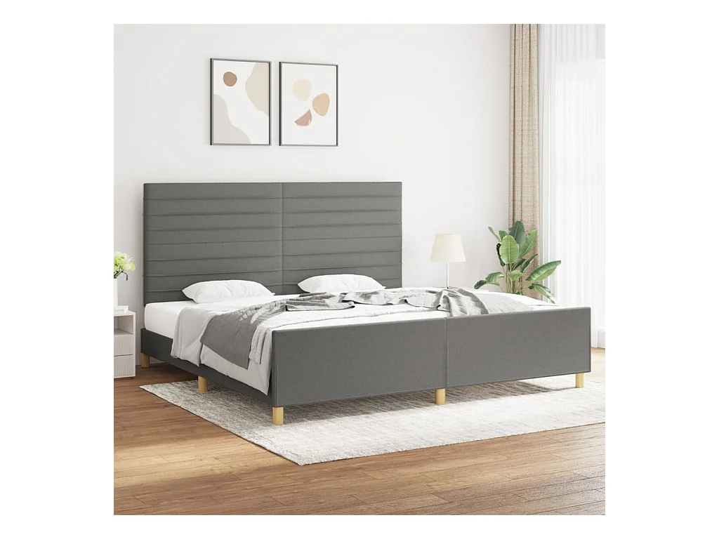 Lit-200x200 cm avec tête de lit Gris foncé Tissu EGGB47344