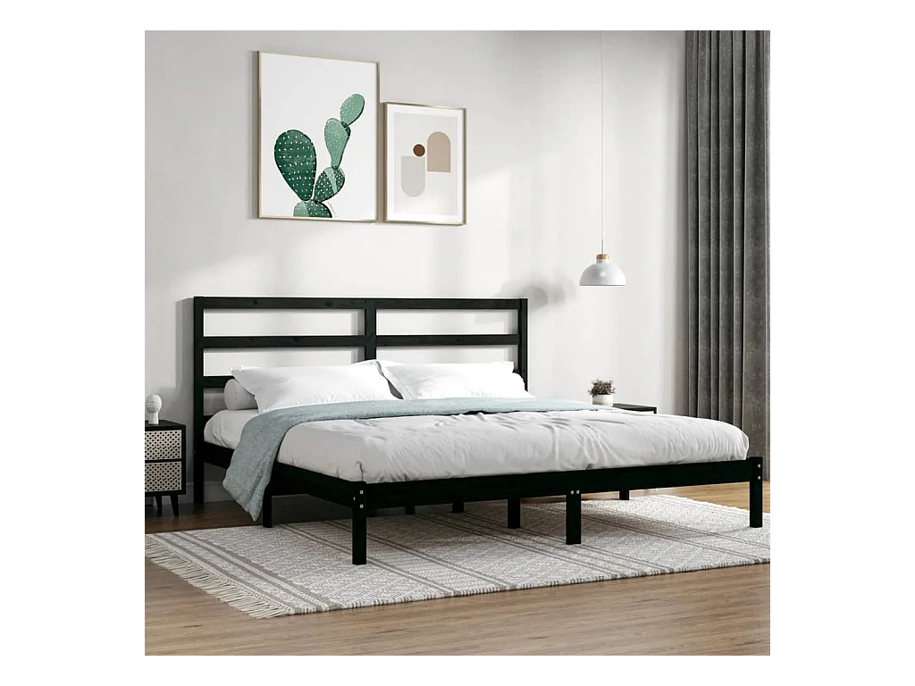 Lit-200x200 cm Noir Bois de pin massif EGGB49394