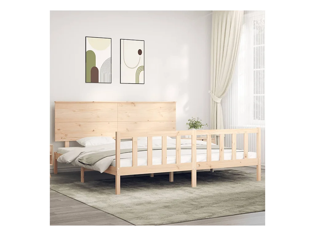 Lit-200x200 cm + tête de lit bois massif HOQW26314