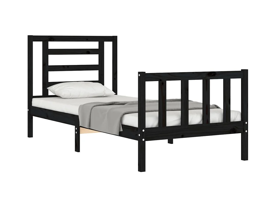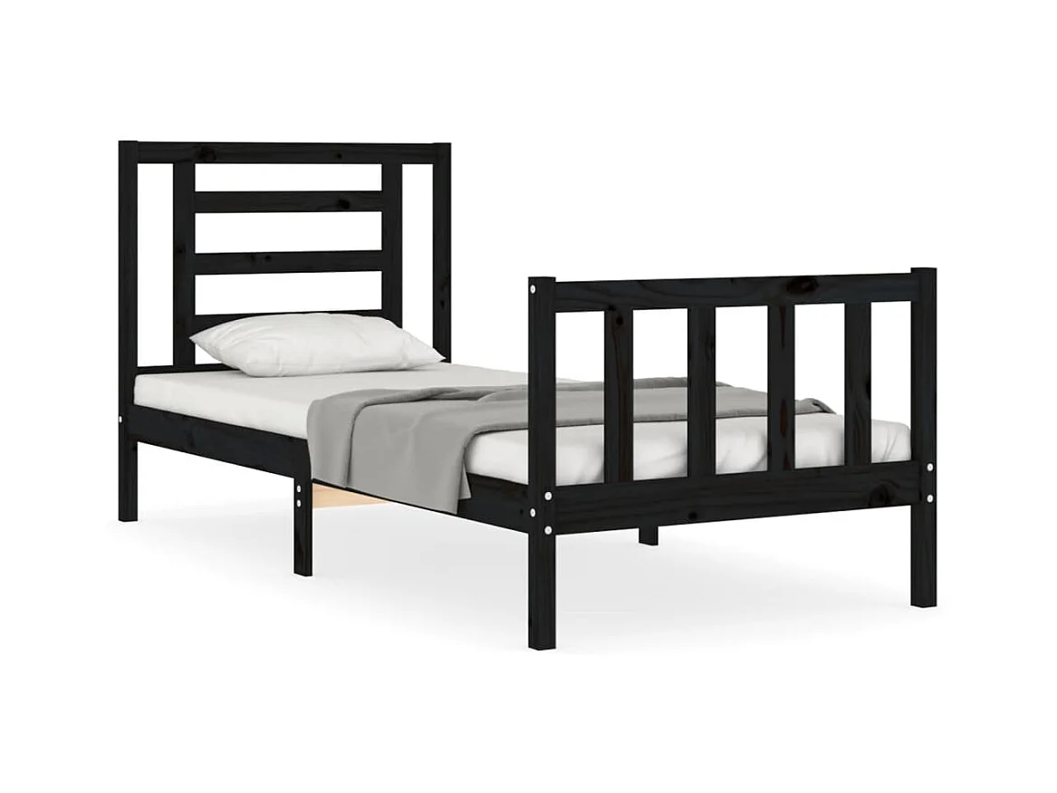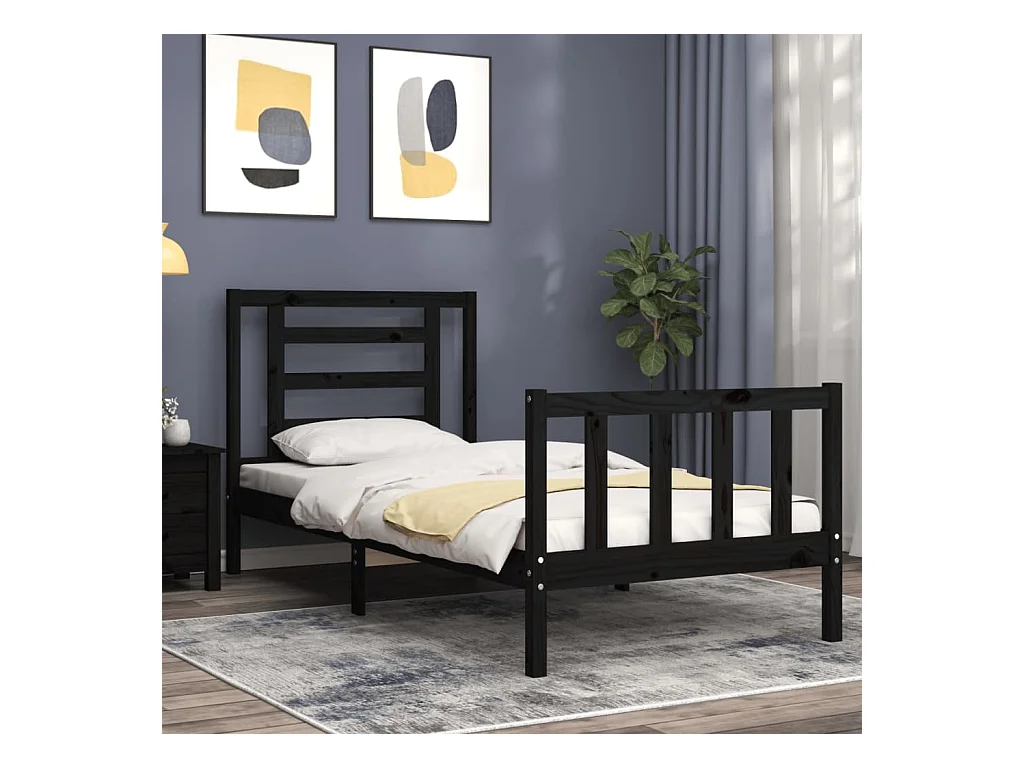 Lit-75x190 cm avec tête de lit noir petit simple bois massif EGGB46094