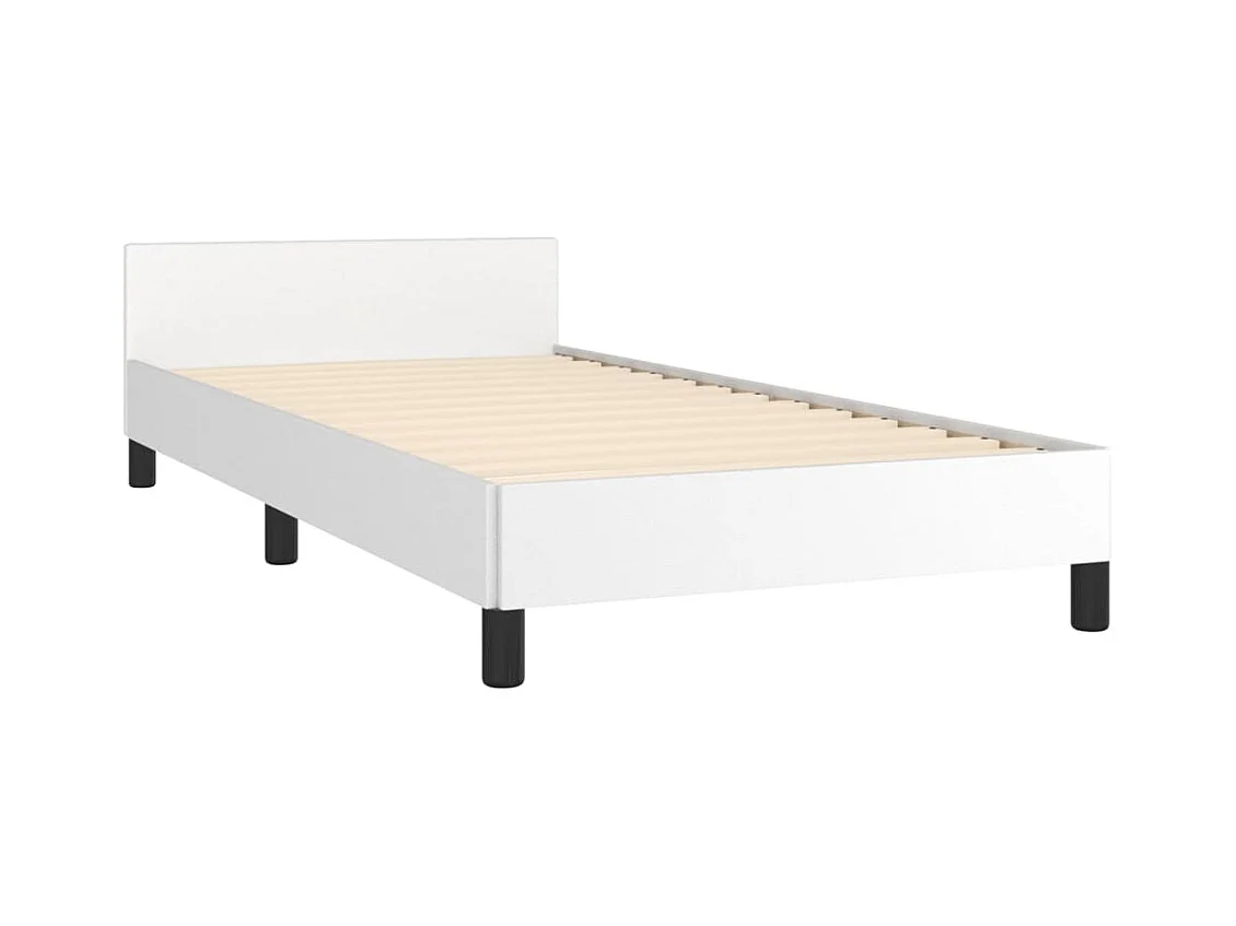 Lit simple + tête de lit blanc et noir 80x200cm similicuir FR86751