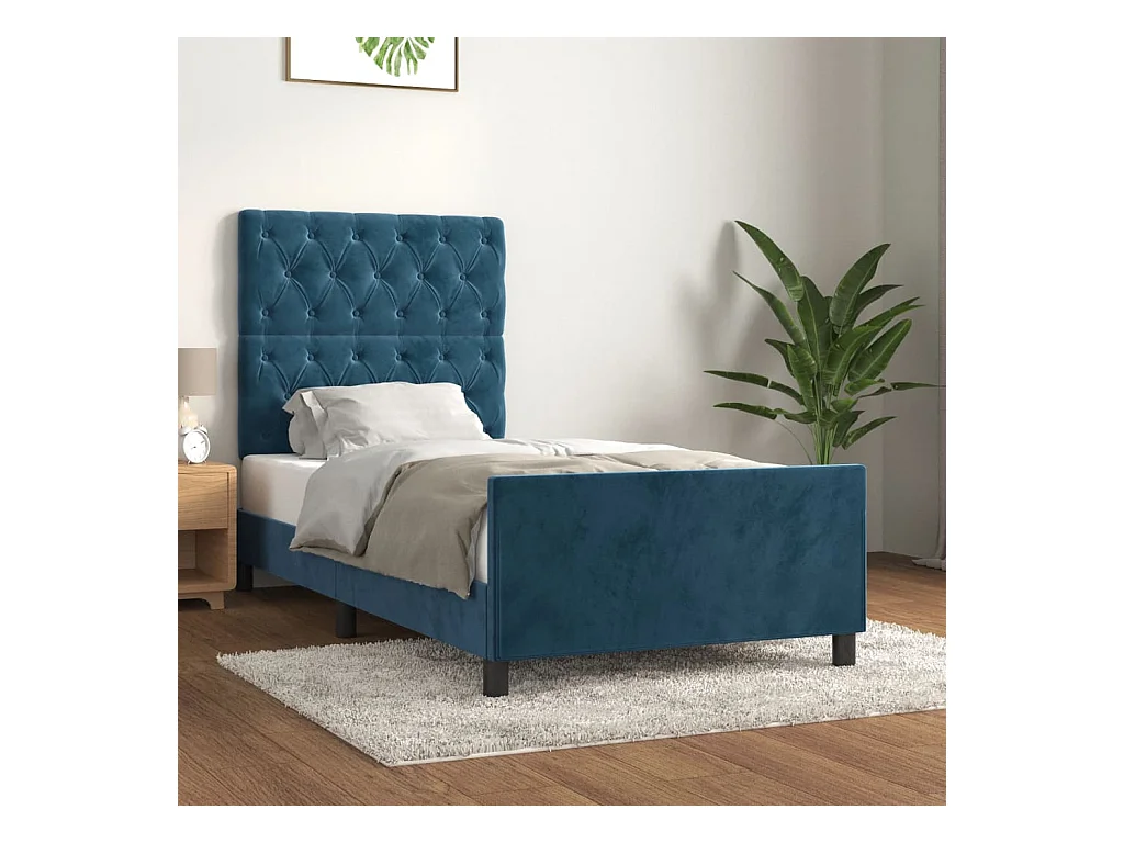 Lit-80x200 cm avec tête de lit Bleu foncé Velours EGGB86714