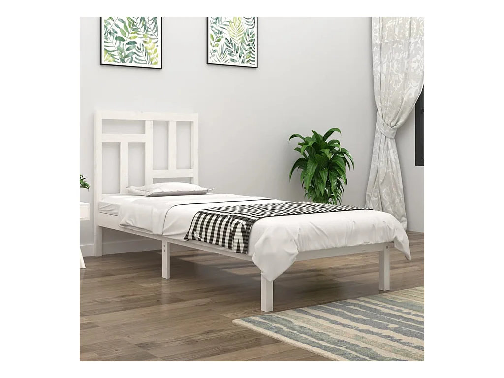 Lit-90x190 cm Blanc Simple Bois massif EGGB19238