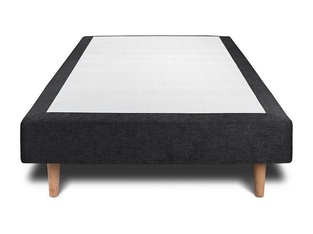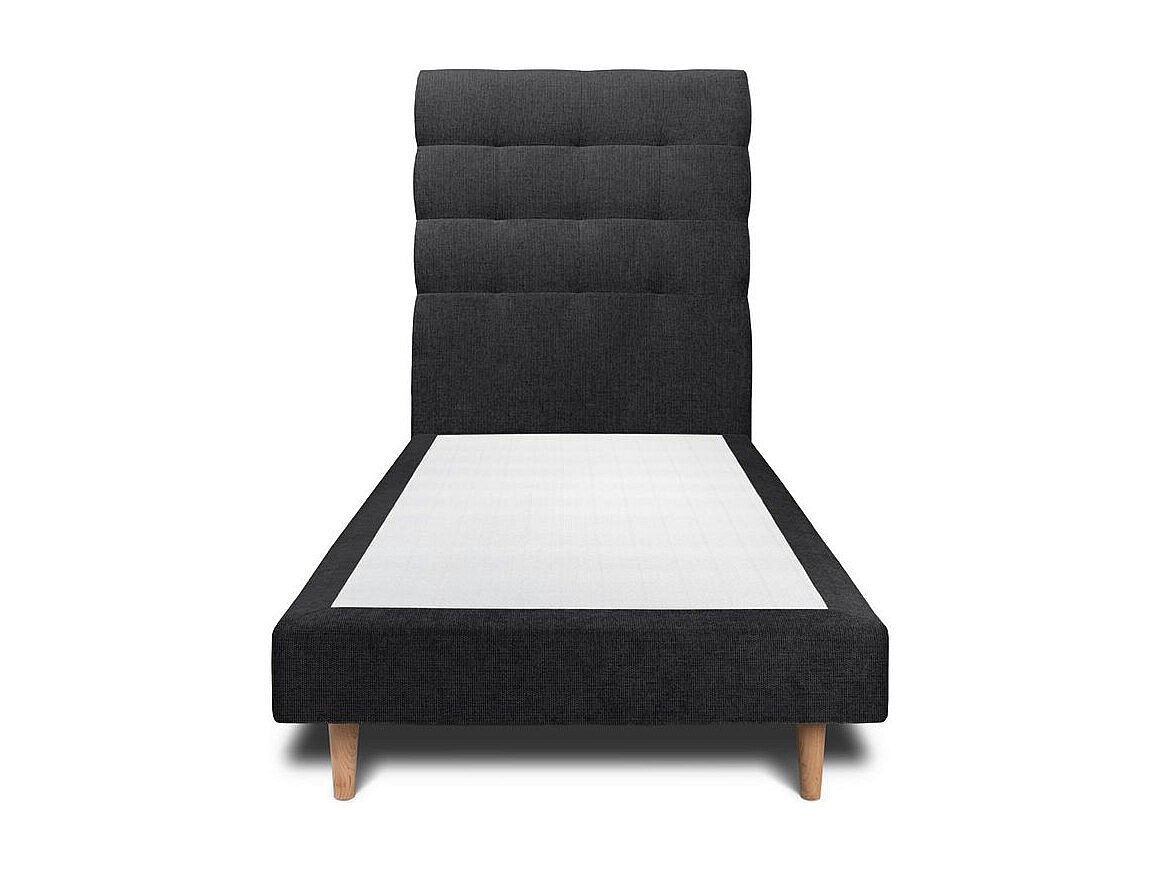 Lit 90x190cm avec tête de lit capitonnée tissu et sommier tapissier Noir - Hauteur totale : 29cm