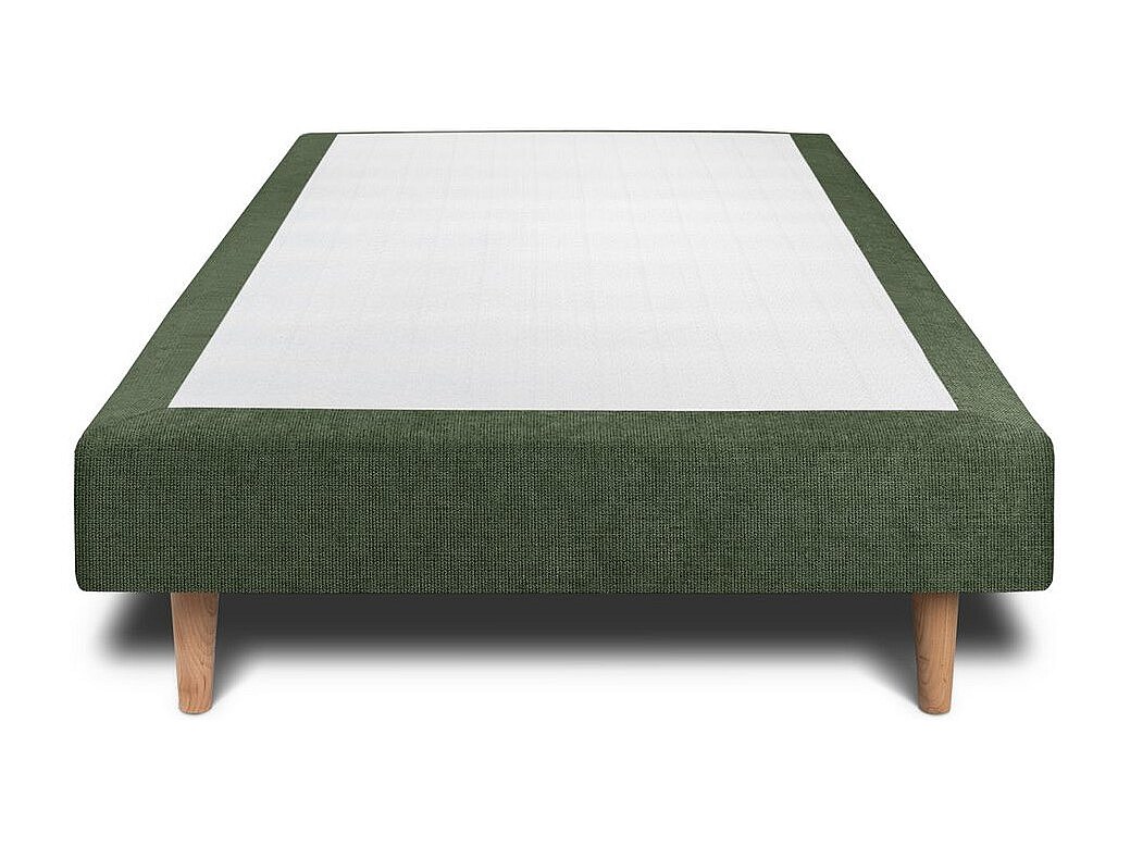 Lit 90x190cm avec tête de lit capitonnée tissu et sommier tapissier vert - Hauteur totale : 29cm