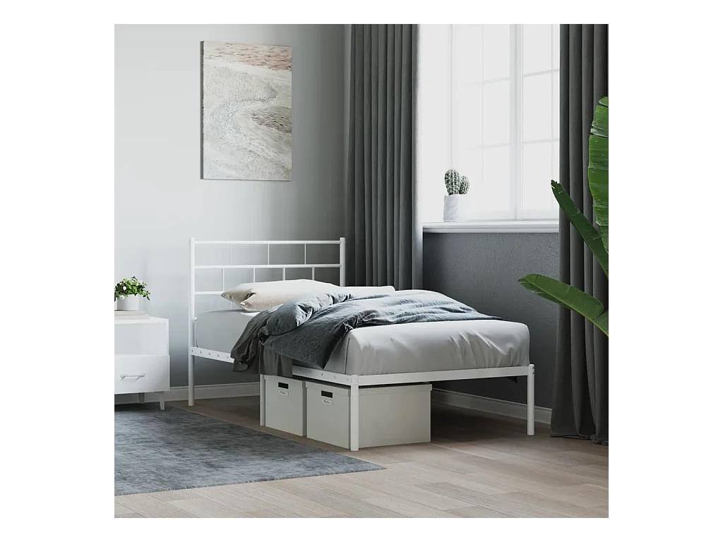 Lit simple métal + tête de lit blanc 90x200 cm FR43452