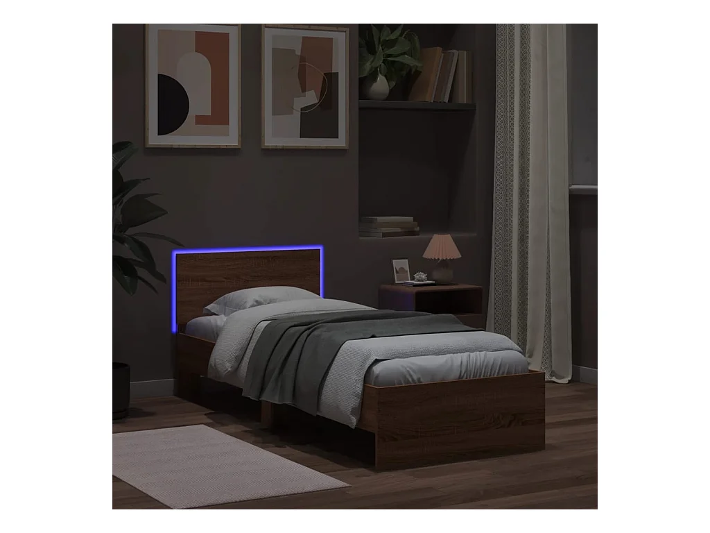 Cadre de lit tête de lit et lumières LED chêne marron 90x200