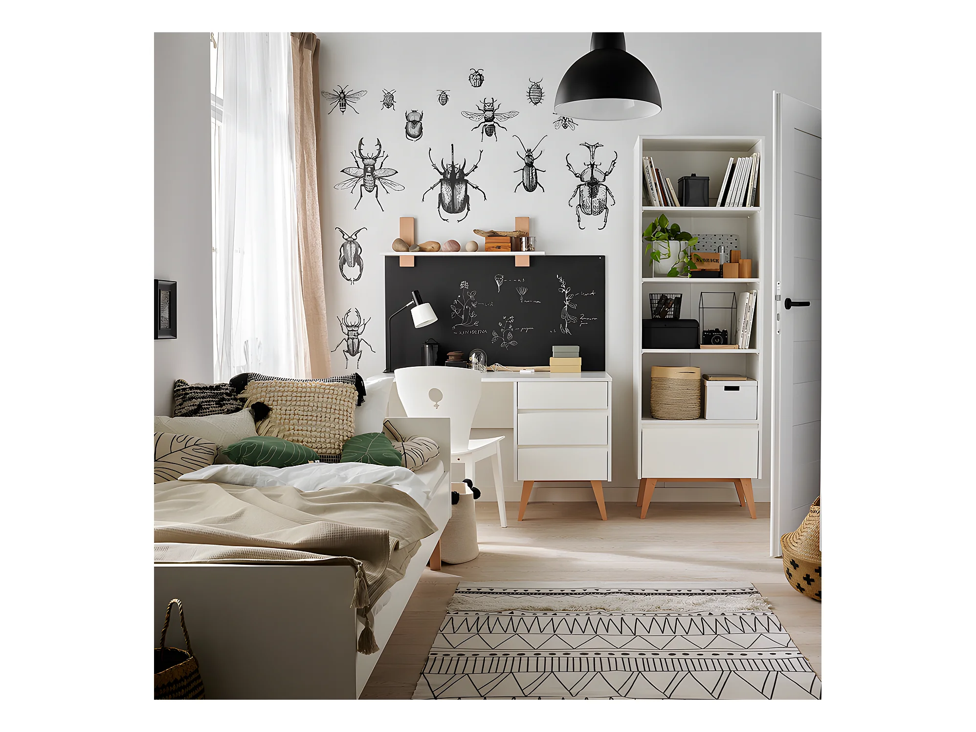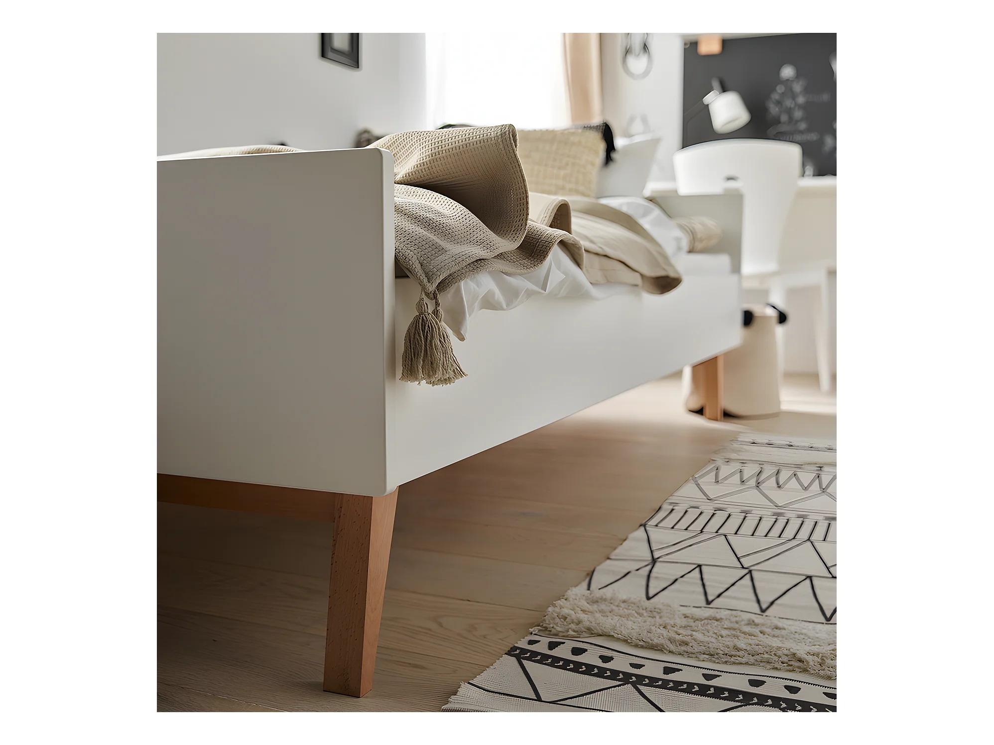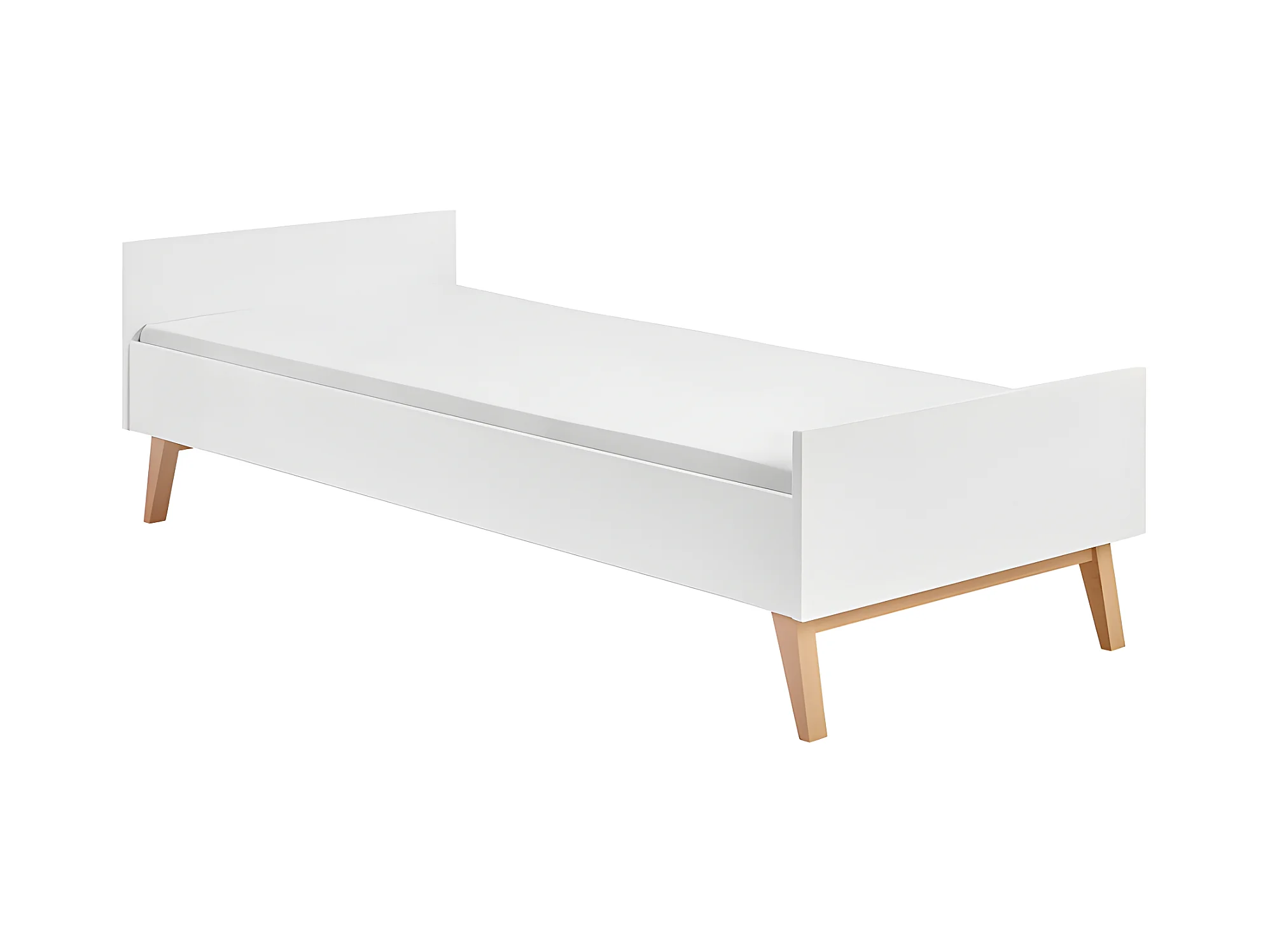Lit 90x200 sommier inclus Swing - Blanc et bois
