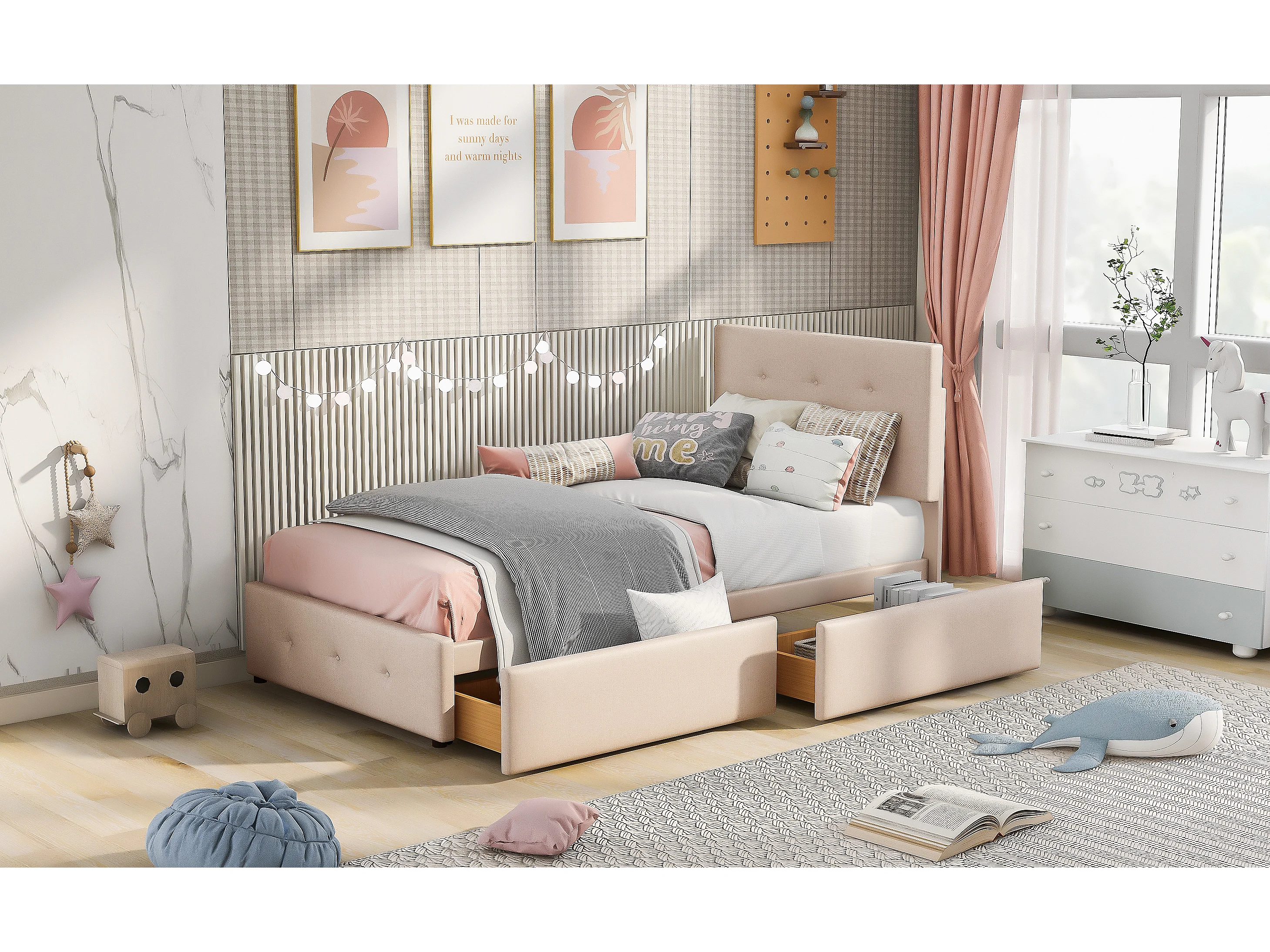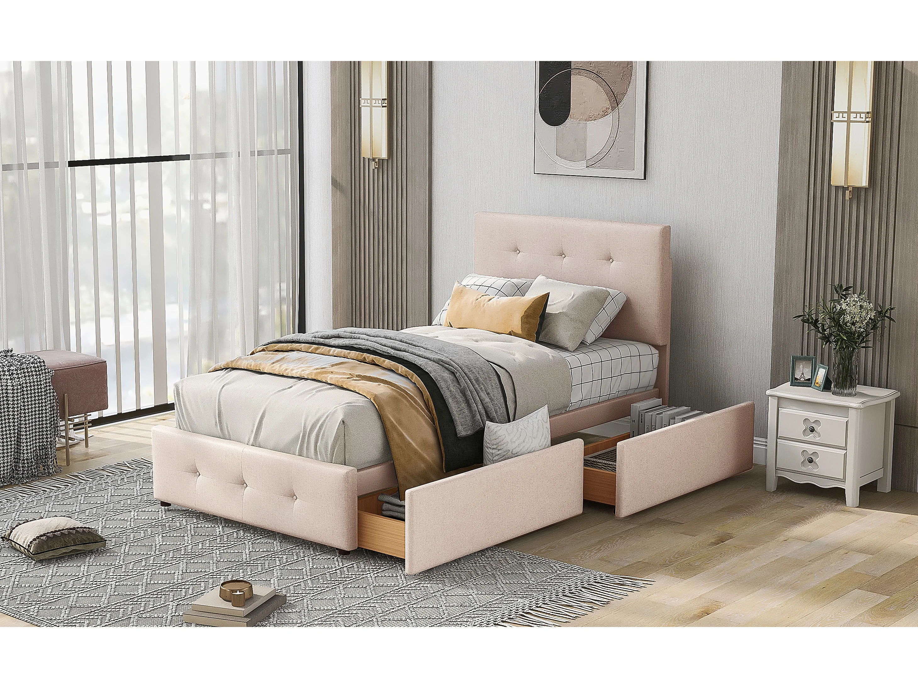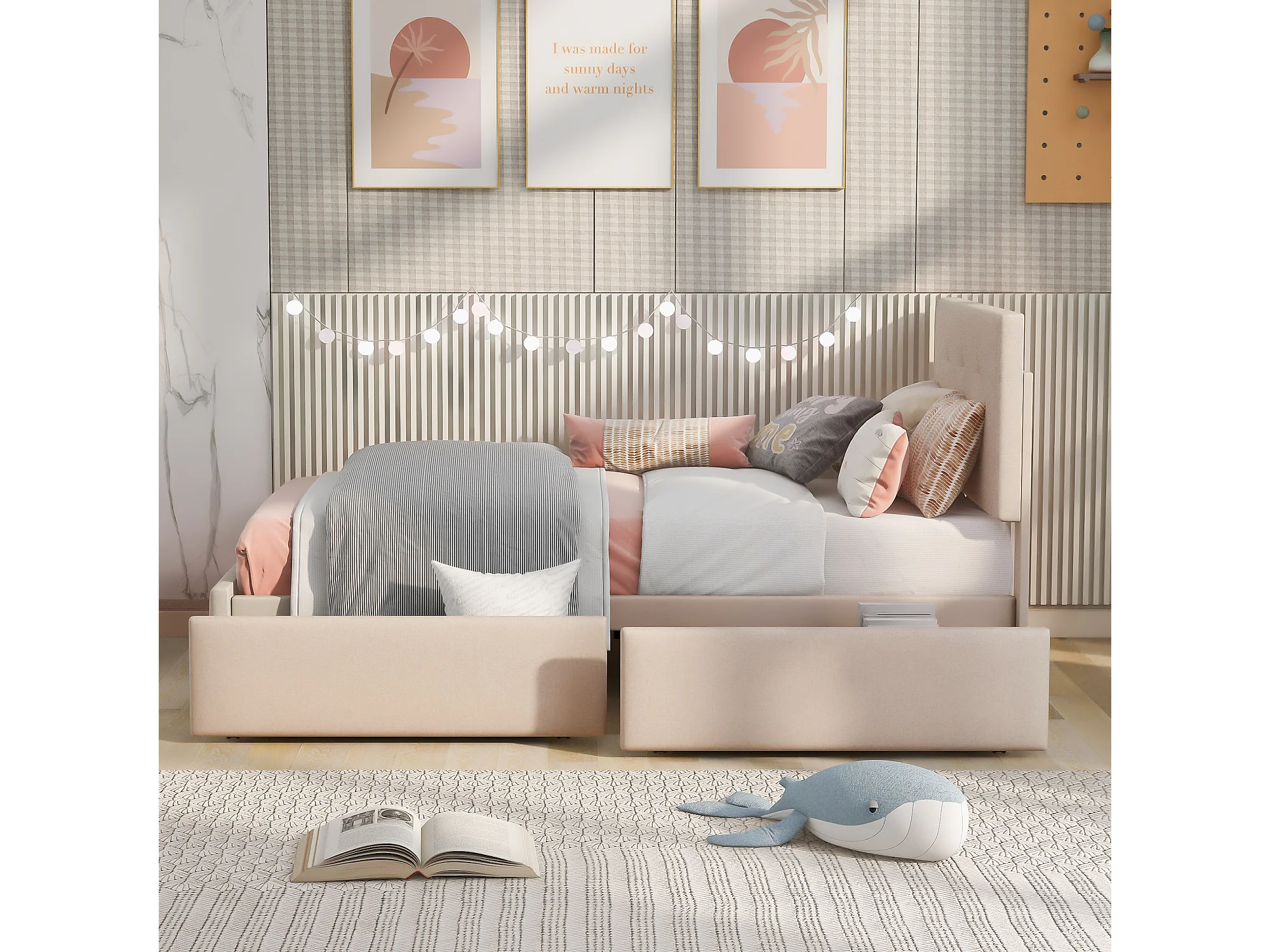Lit 90x200cm avec rangement, tête rembourrée, sommier à lattes, velours beige foncé (208.5x97x100cm)