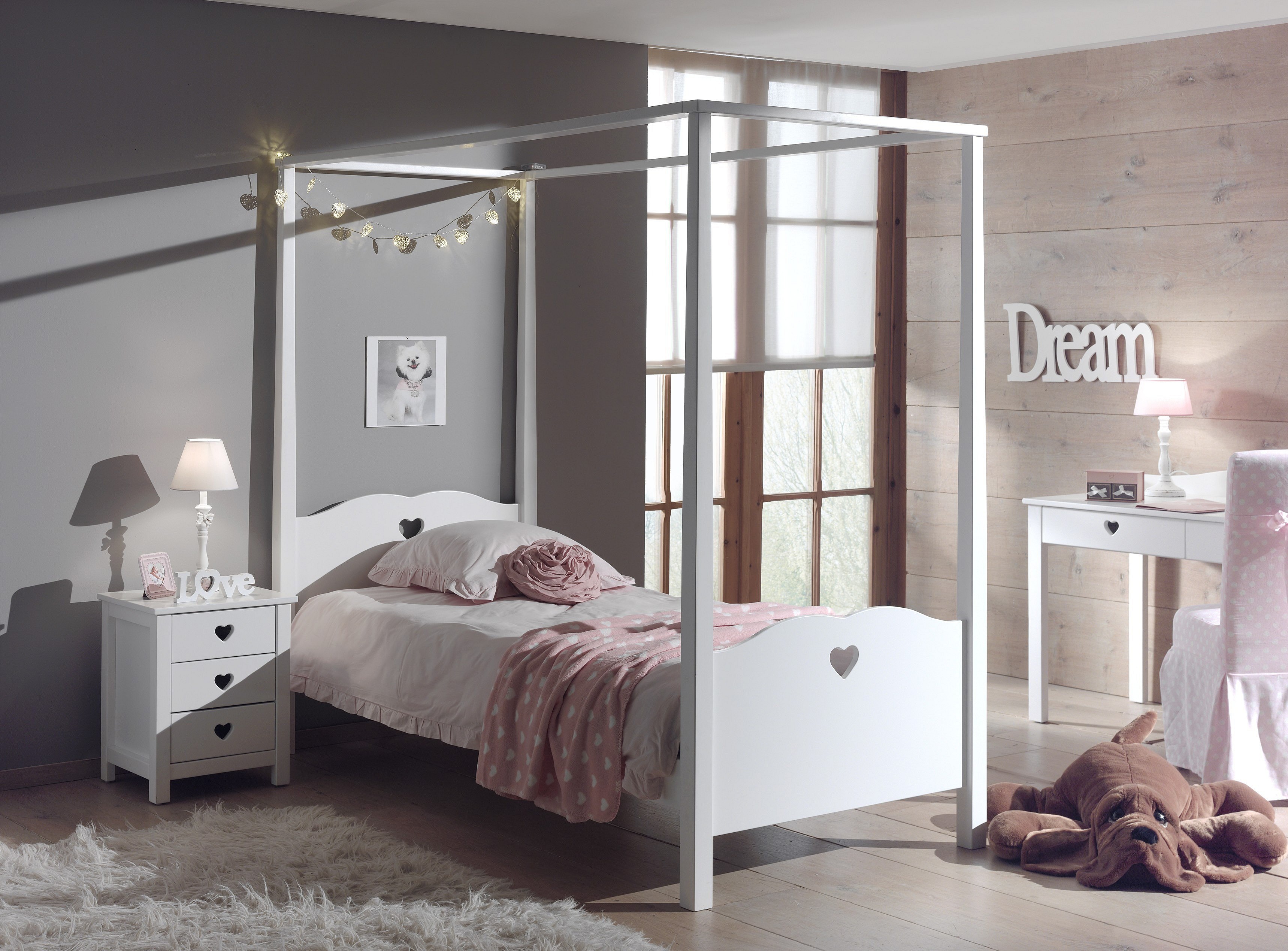 Pack - Lit à Baldaquin Enfant & Sommier "Amori" 90x200cm Blanc