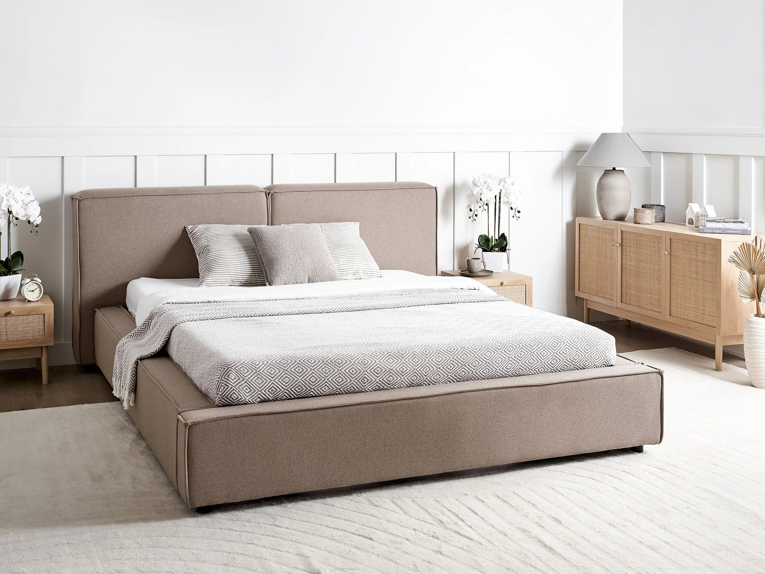 Lit à eau Tissu LINARDS 160 x 200 cm Marron clair
