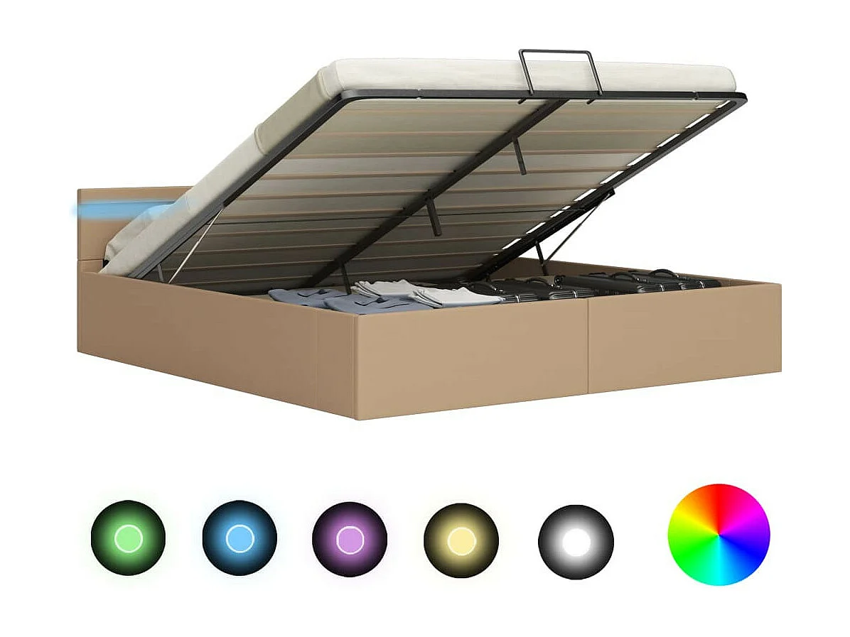 Lit à rangement et LED Cappuccino Similicuir 180x200