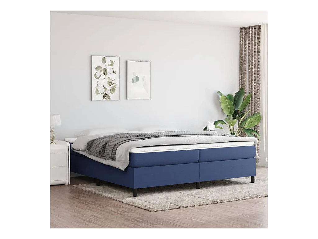 Lit à sommier à ressorts Bleu 200x200 Tissu