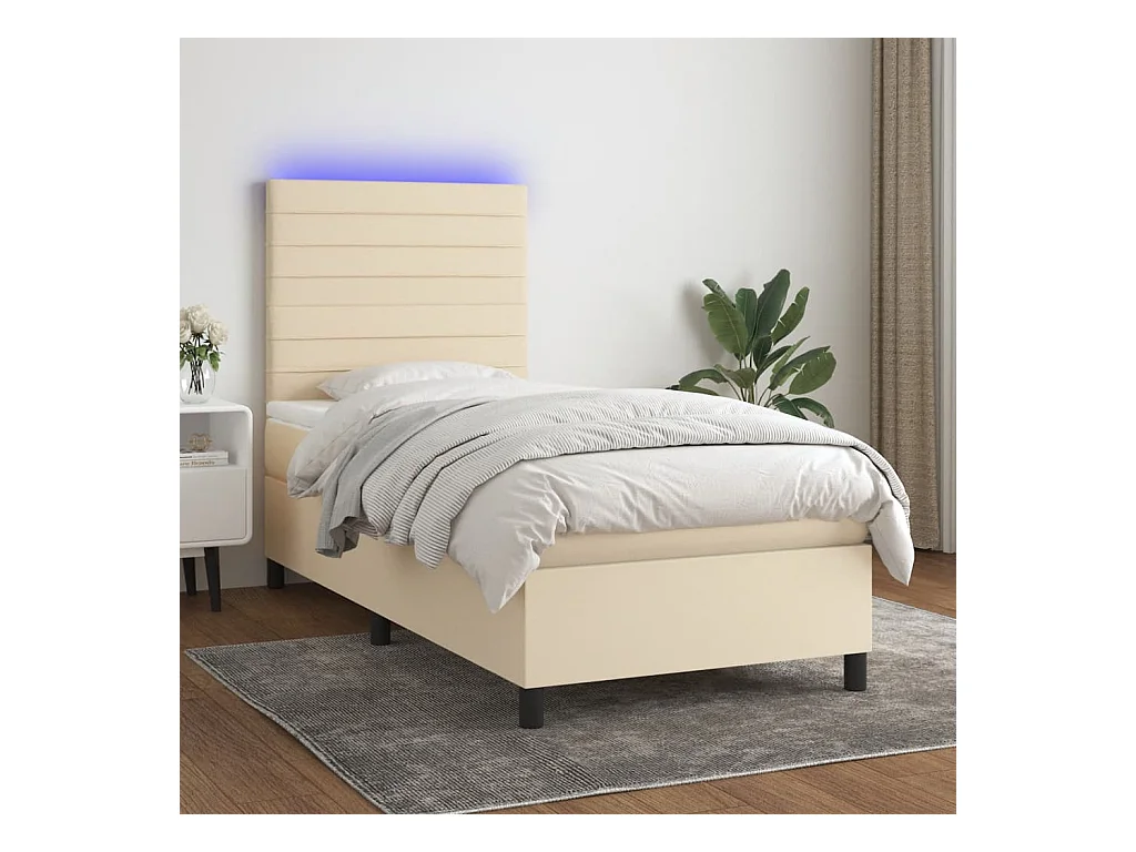 Lit à sommier tapissier avec matelas et LED Crème 100x200 Tissu 2